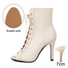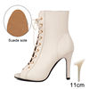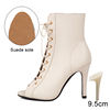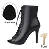 HROYL Ballroom Dance Shoes Woman Lace-up Fish Mouth Dance Sandals Women Summer Stiletto Short Boots Latin Jazz Dance High Heels