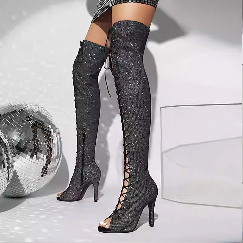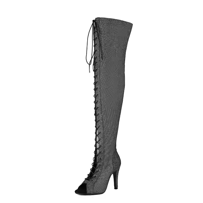 HROYL Ballroom Dance Shoes Women’s Over-the-knee Dance Boots Women’s Stiletto Jazz Dance High Heels Straps Long Boots Large Size