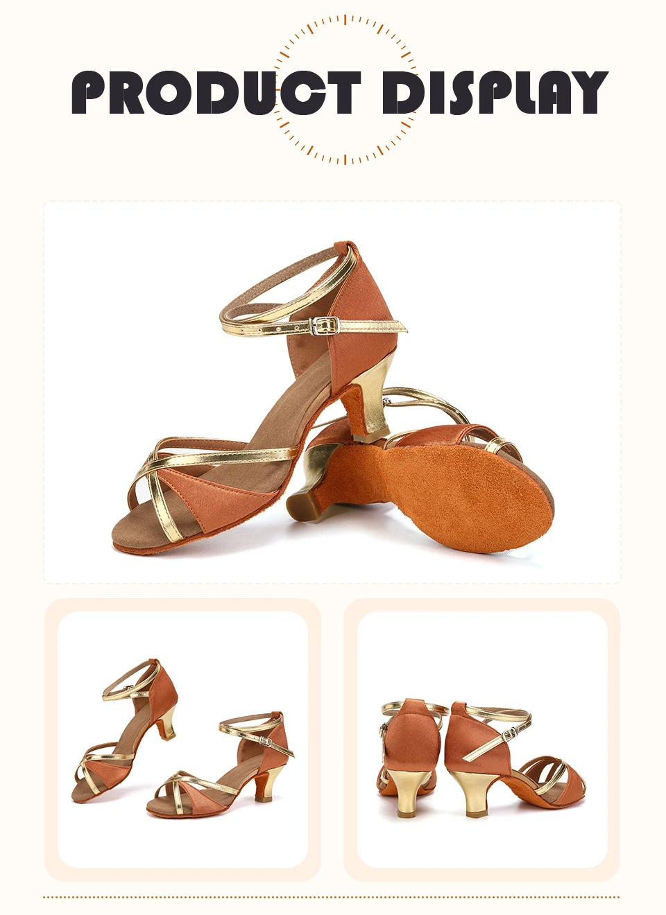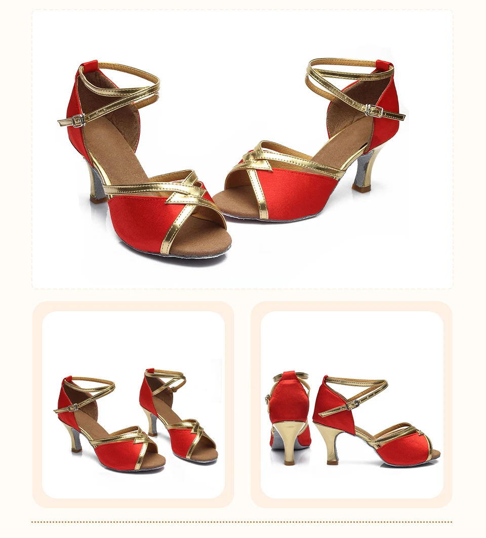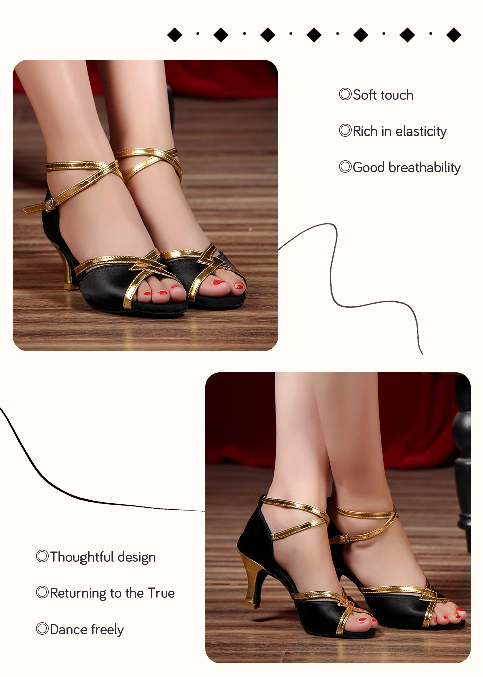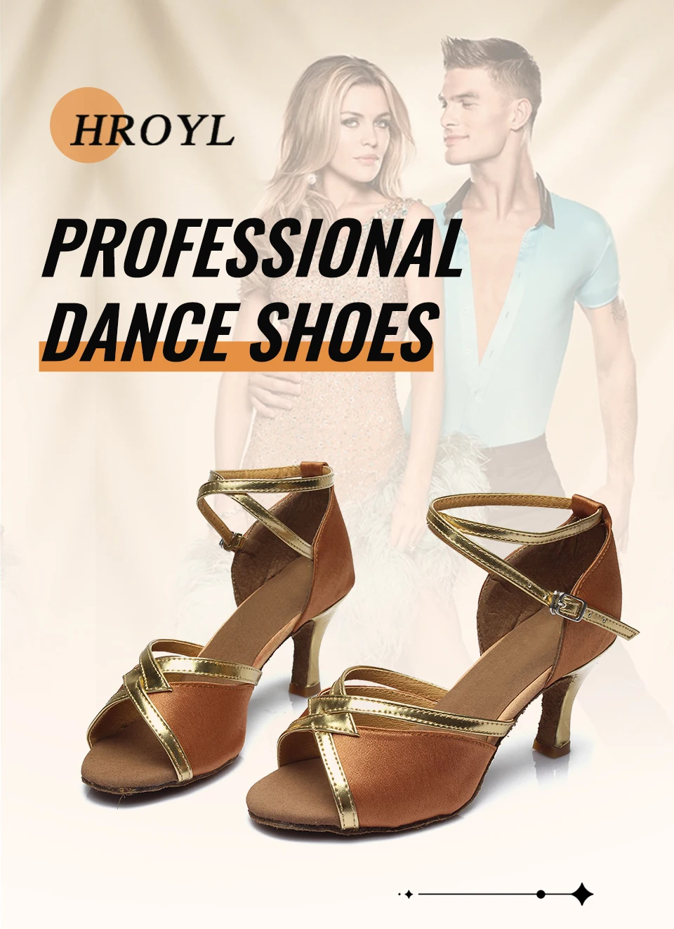 HROYL Ballroom Dancing Shoes Woman Girls Latin Dance Shoes for Women Soft-soled Satin Mid-heel 5cm/7cm Tango Salsa Waltz Sandals