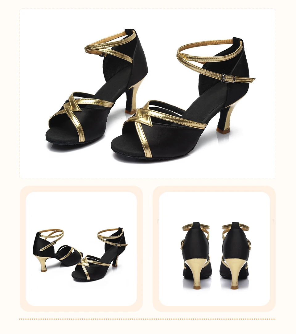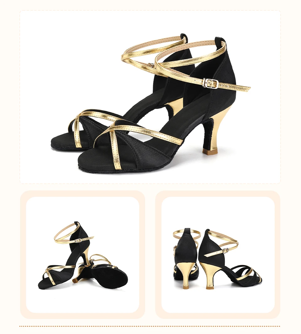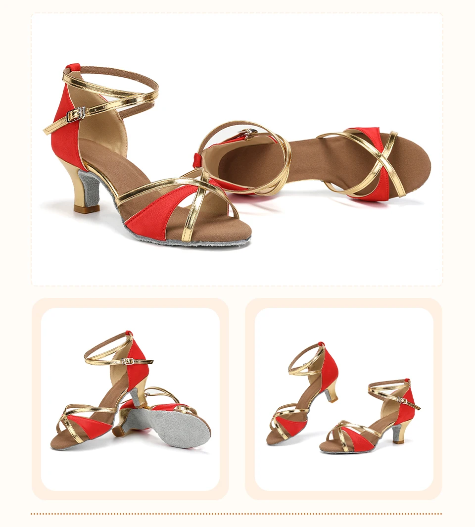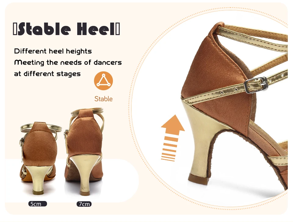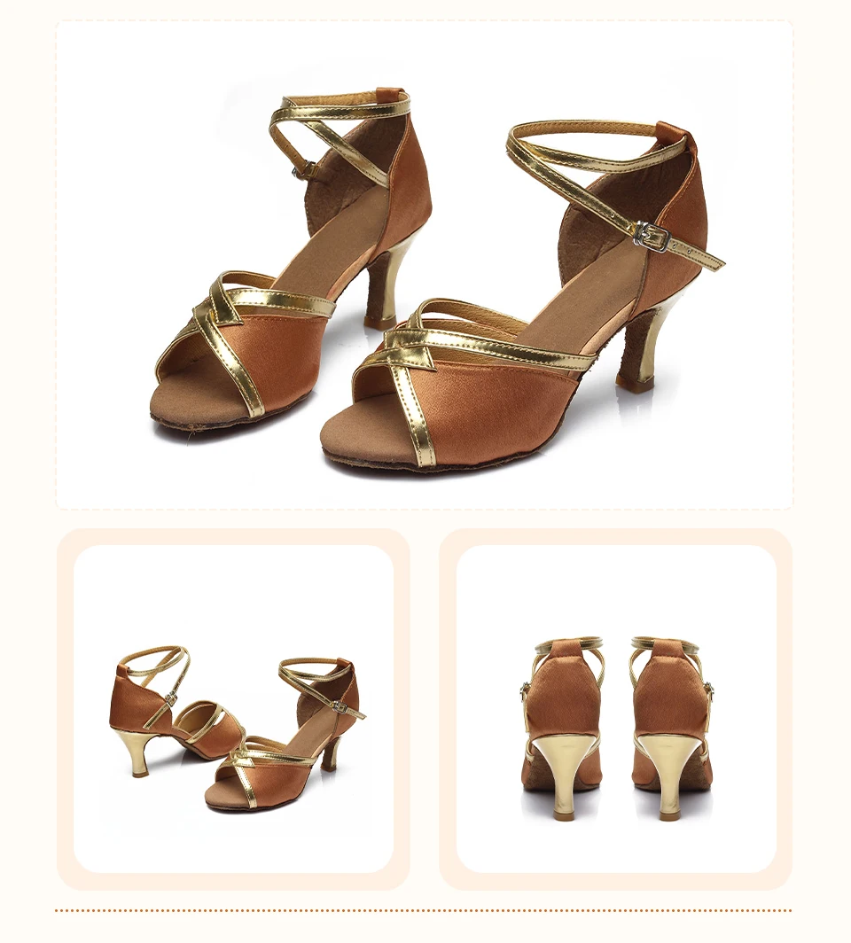 HROYL Ballroom Dancing Shoes Woman Girls Latin Dance Shoes for Women Soft-soled Satin Mid-heel 5cm/7cm Tango Salsa Waltz Sandals