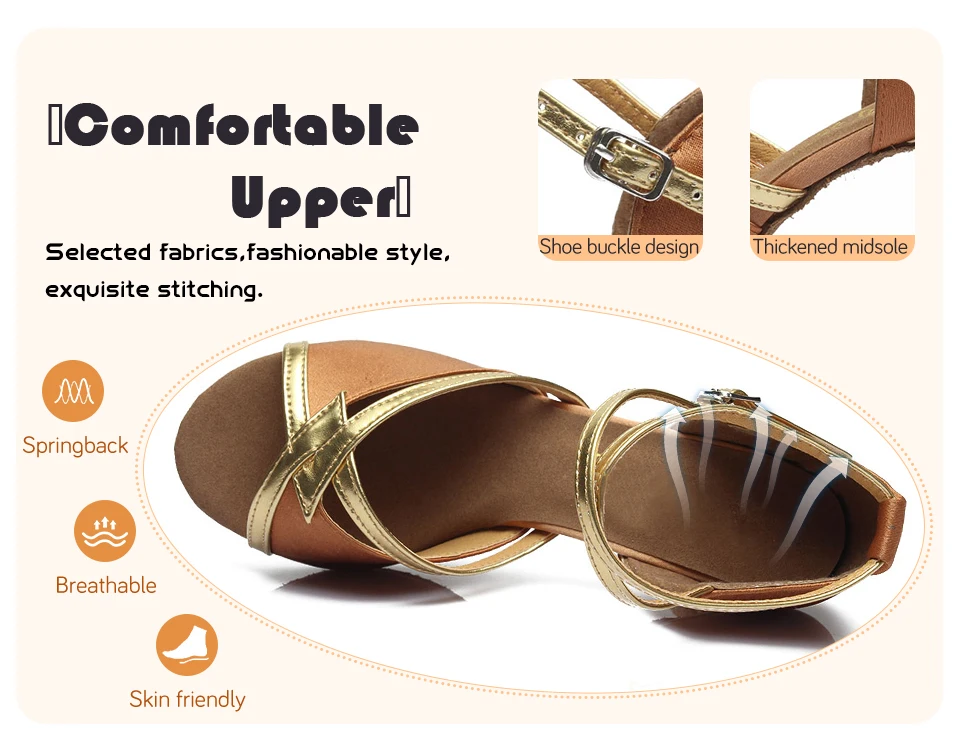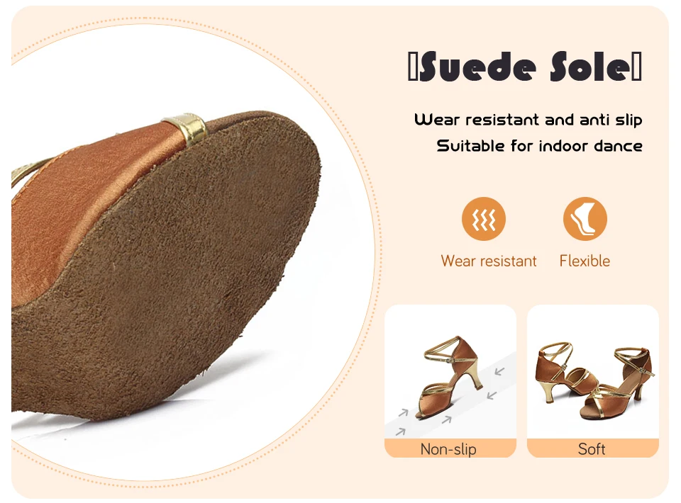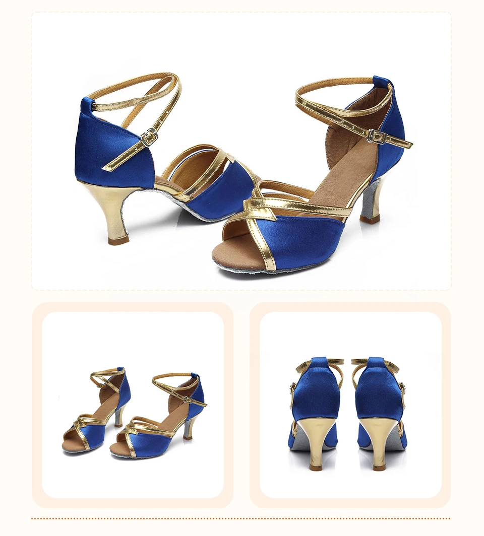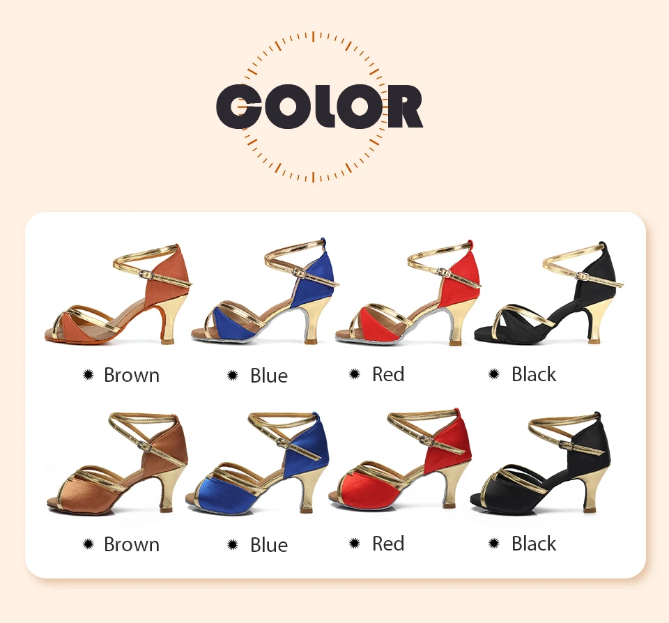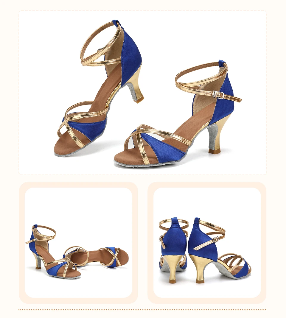 HROYL Ballroom Dancing Shoes Woman Girls Latin Dance Shoes for Women Soft-soled Satin Mid-heel 5cm/7cm Tango Salsa Waltz Sandals
