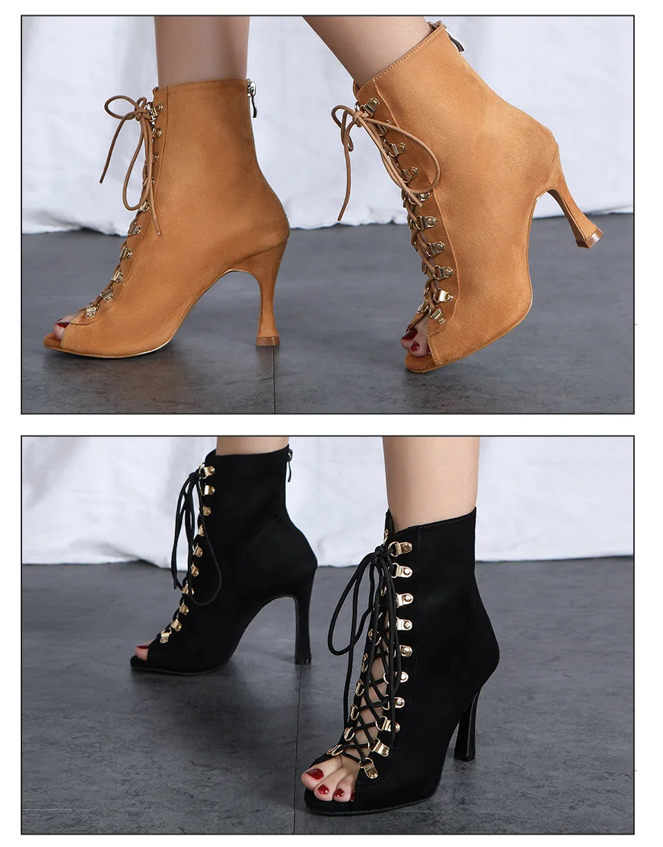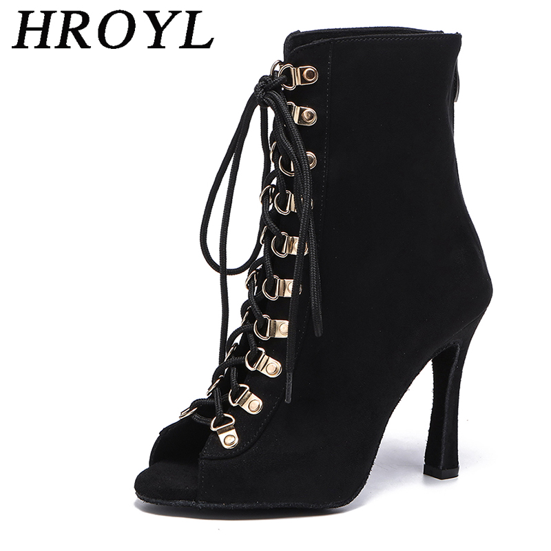 HROYL Ballroom Latin Dance Shoes Women High Heels Elegant Boots Girls Outdoor Cuban For Women’s Dancing Shoes Pole Salsa Waltz