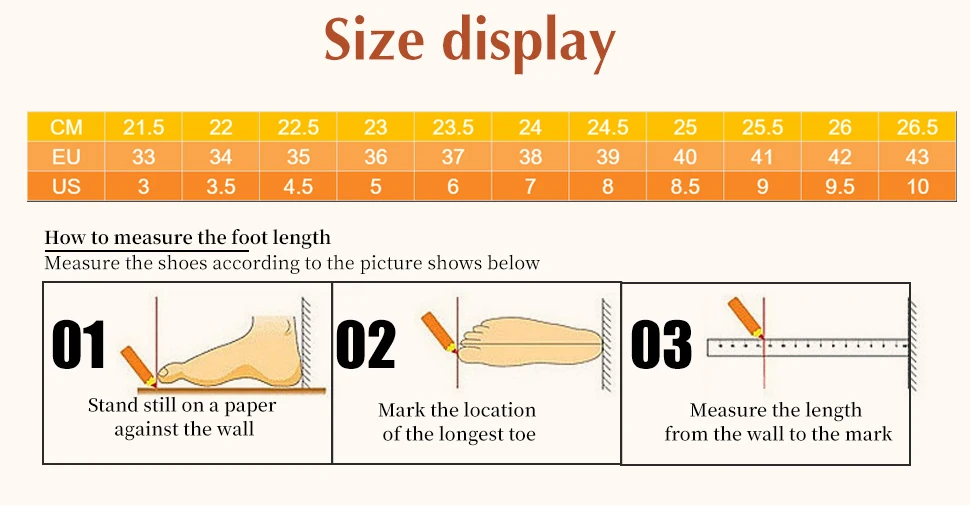 Size Tip:Please Measure your feet length before place the order, then refer to the size chart to choose the size according to your feet length.