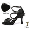 HROYL Double Buckle Satin Women Latin Dance Shoes Rhinestone Latin Salsa Girl Dancing Shoes Shiny Ballroom Dance Shoes Ladies