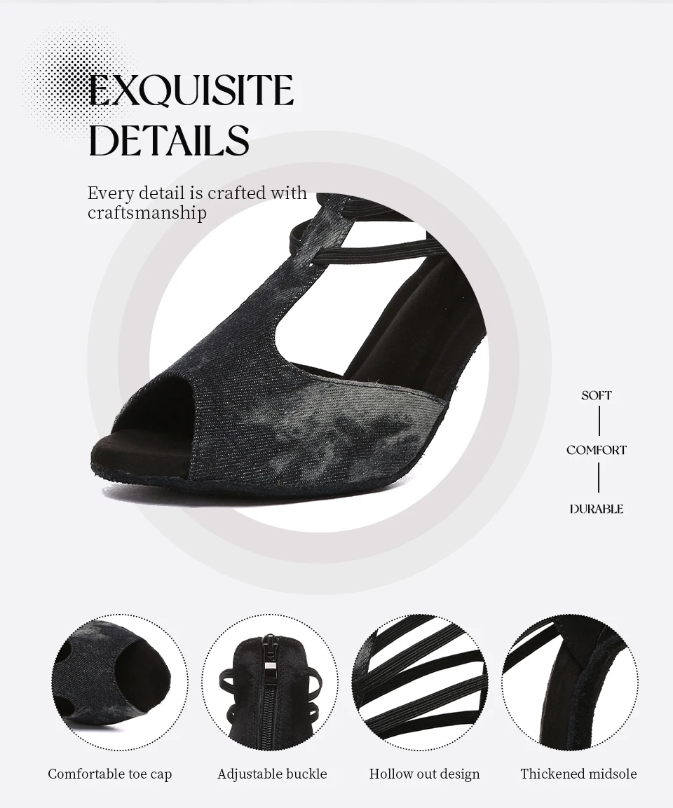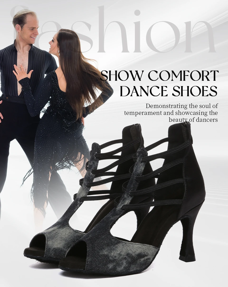 HROYL Elastic Shoelaces Latin Dance Shoes Women Jazz Tango High-top Dance Boots Professional Soft-soled Ballroom Dance Shoes