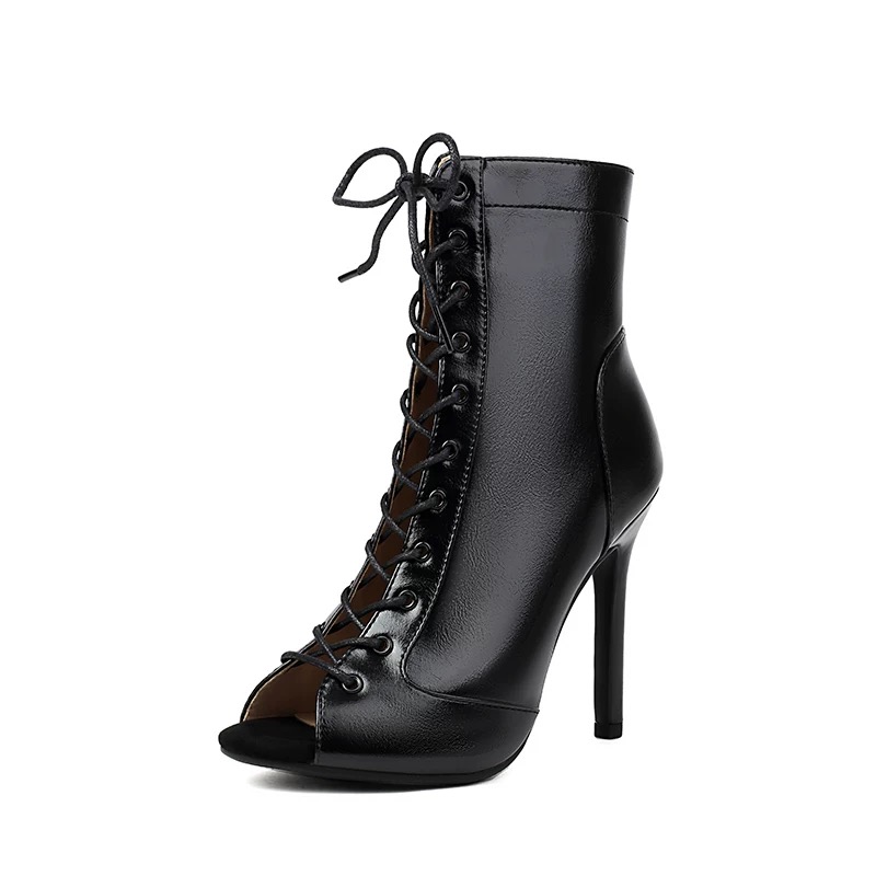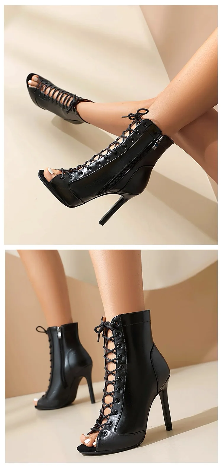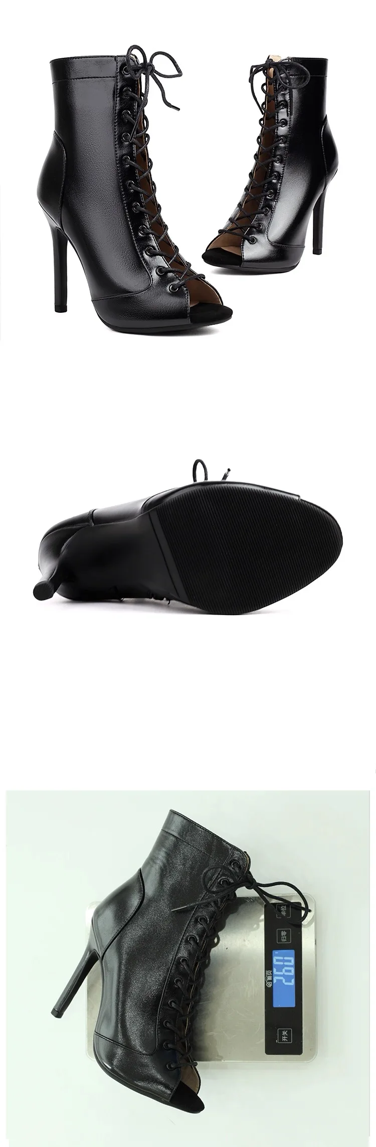 HROYL Fashion Women Thin HIgh Heels Comfort Lace-up Peep Toe Boot Indoor Customizable Jazz Dance Shoes Woman Latin Dance Heels