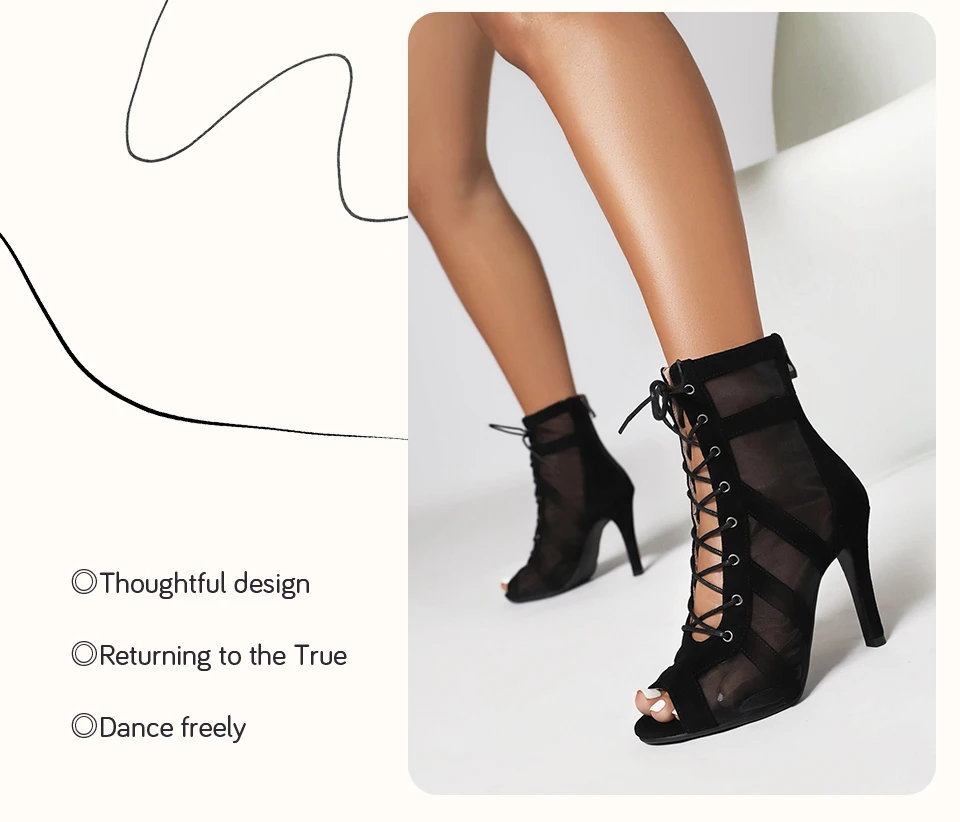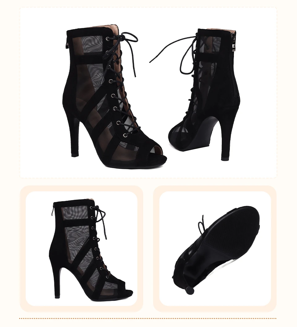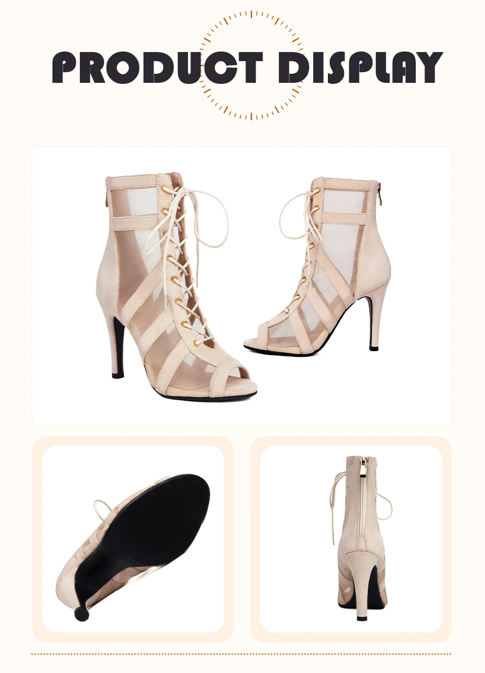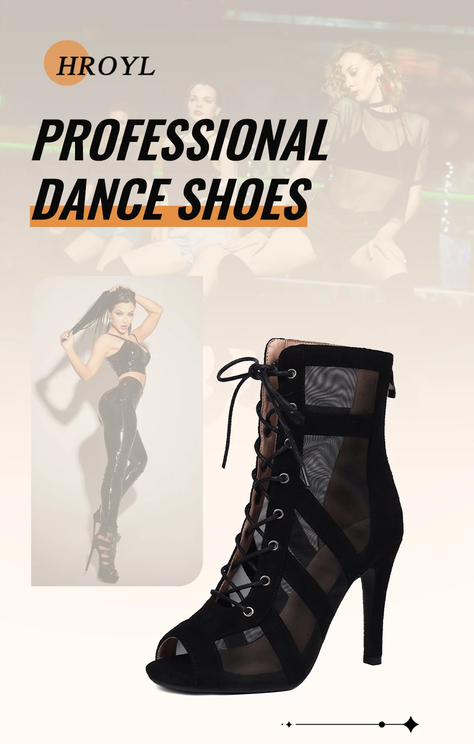 HROYL Fish Mouth Sandals Women Dance Shoes Spring and Summer Stiletto Hollow Short Boots Lace-up Jazz Tango Dance High Heels