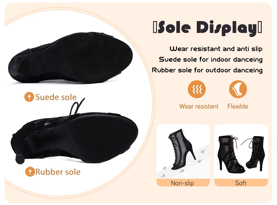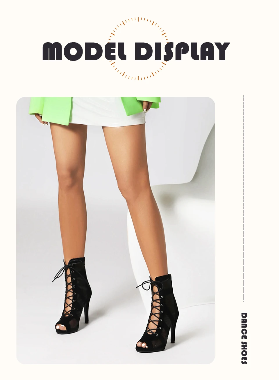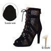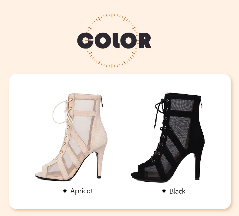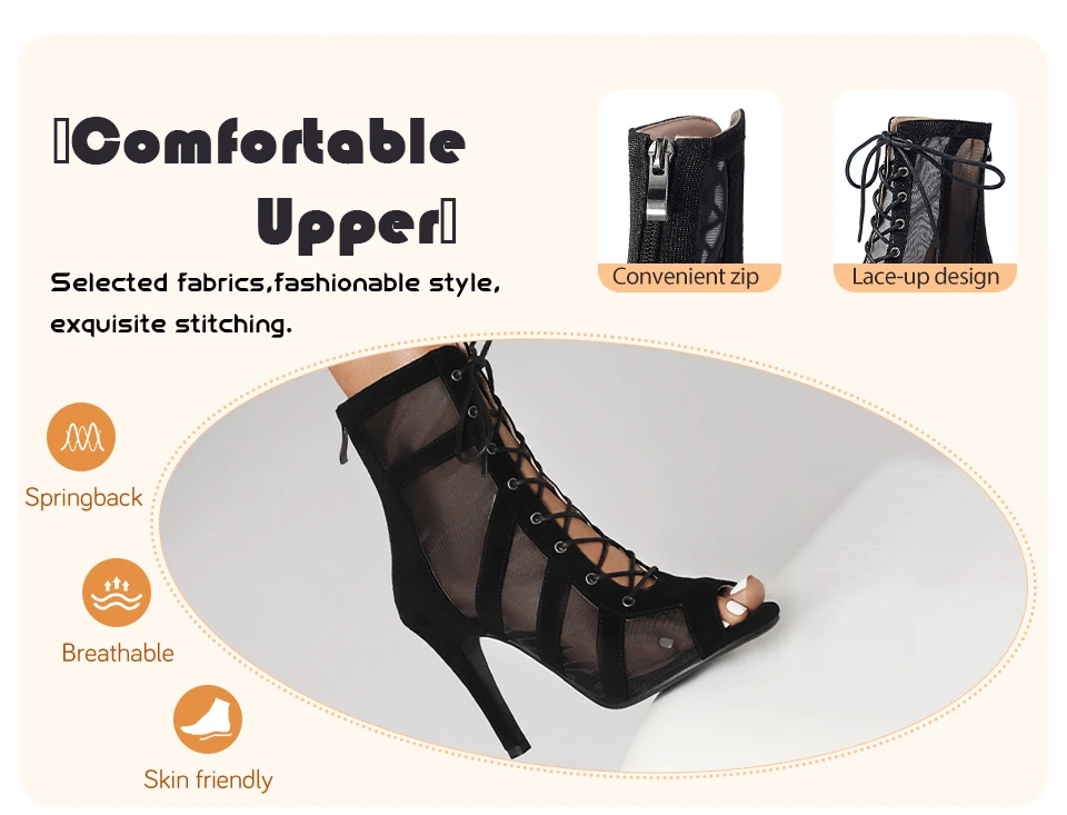 HROYL Fish Mouth Sandals Women Dance Shoes Spring and Summer Stiletto Hollow Short Boots Lace-up Jazz Tango Dance High Heels