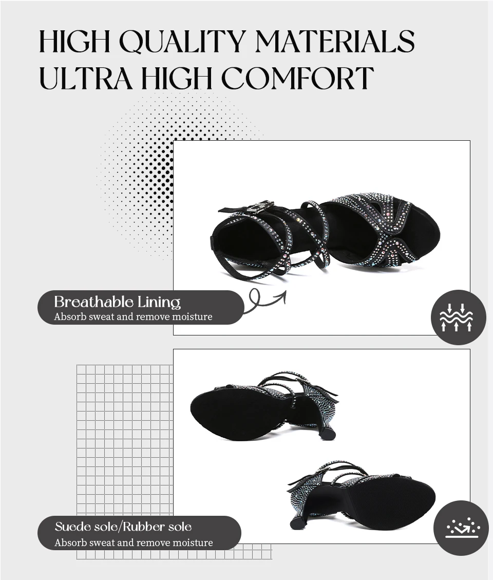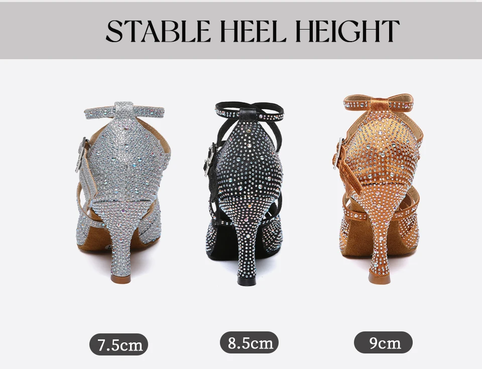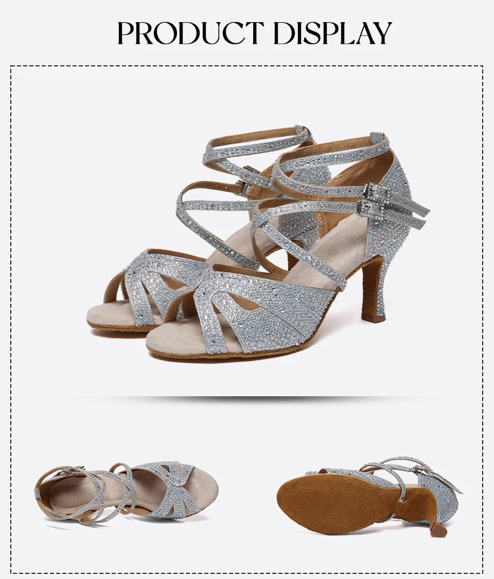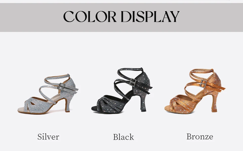HROYL High-heeled Women’s Latin Dance Shoes 6-10 cm Flash Cloth Ballroom Dance Shoes Soft-soled Party Wedding Rhinestone Shoes