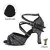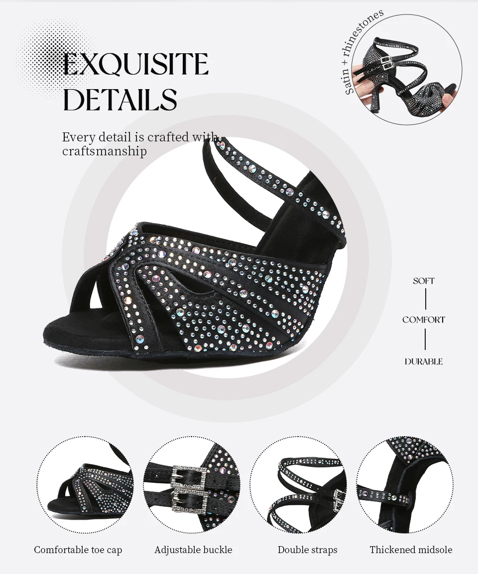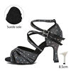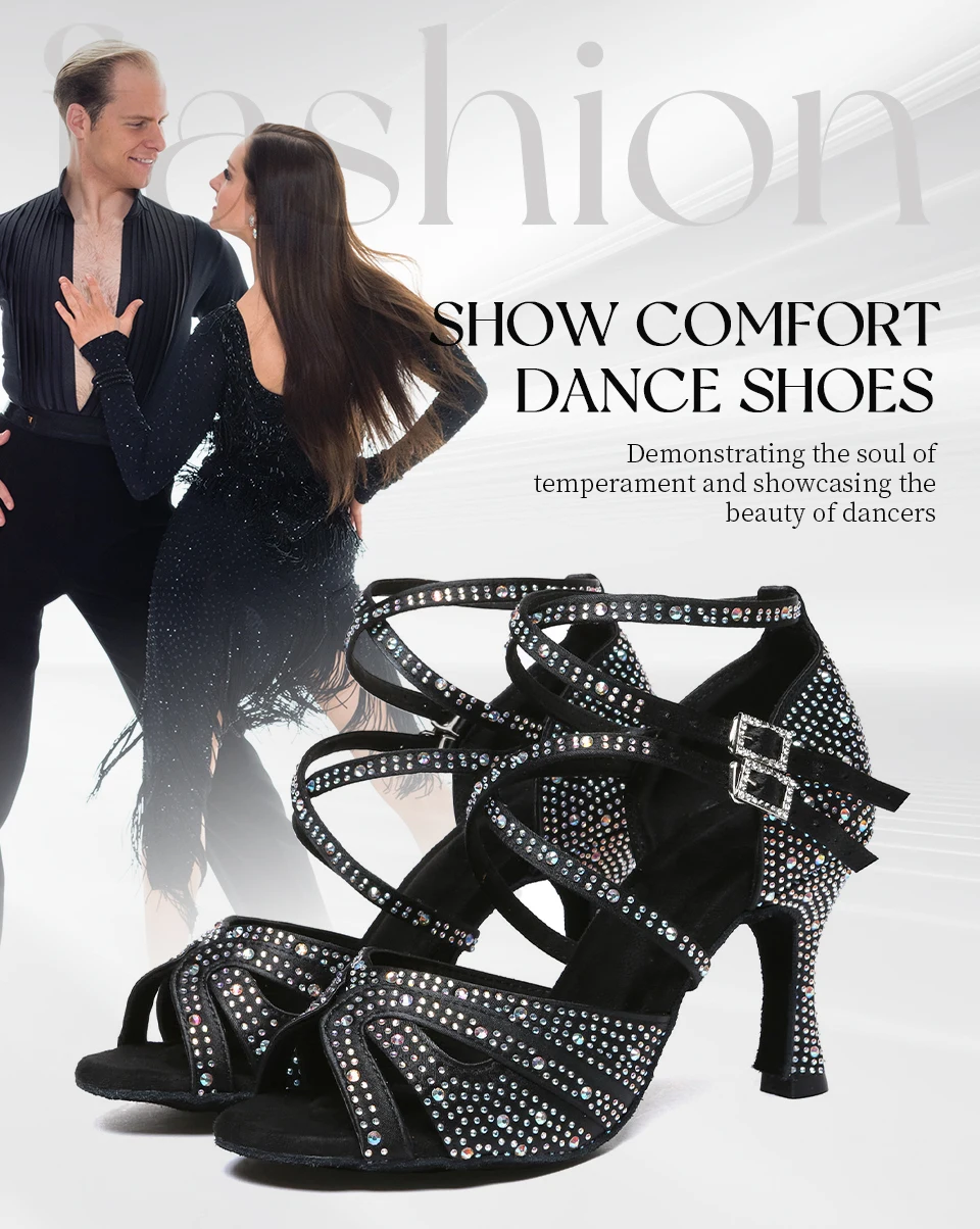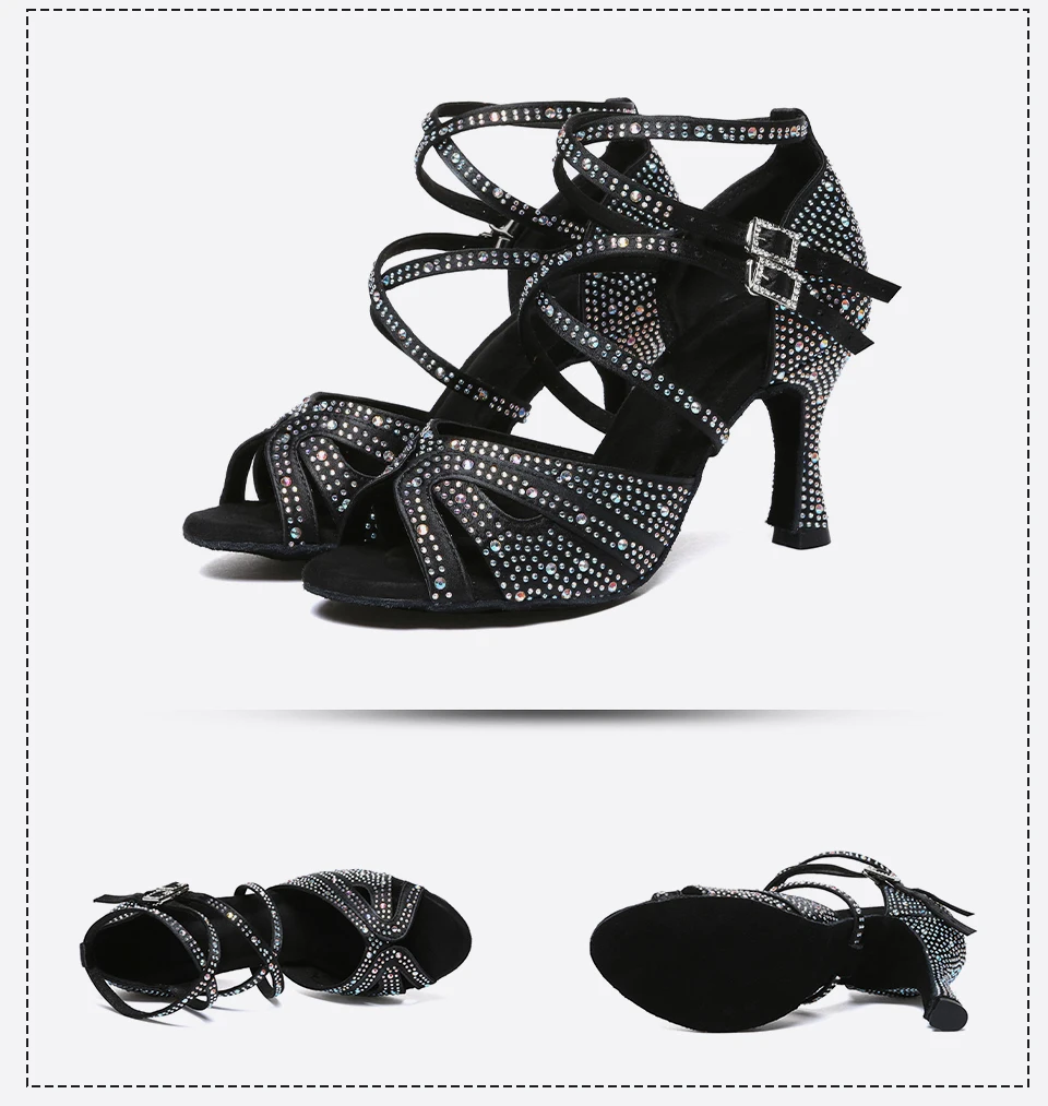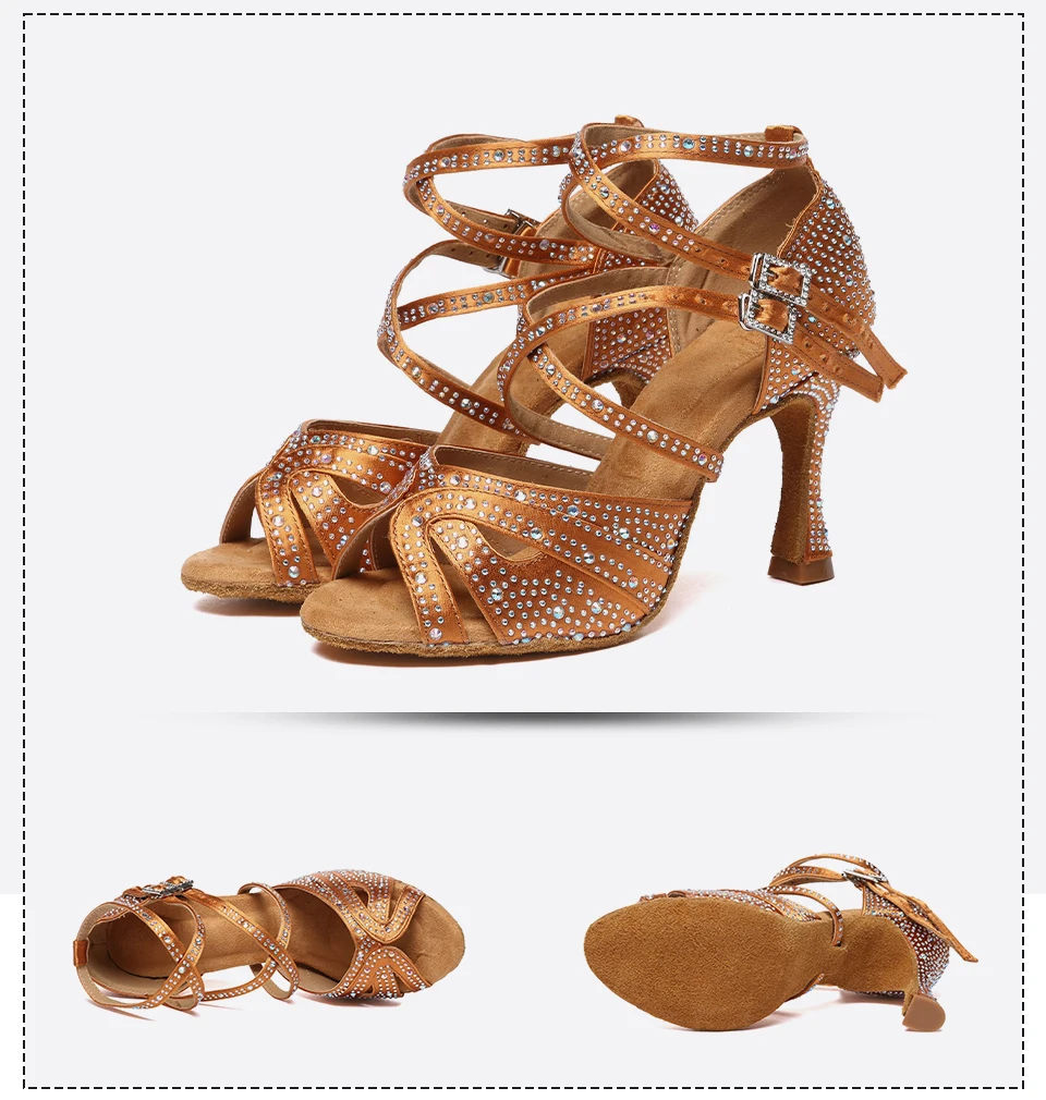 HROYL High-heeled Women’s Latin Dance Shoes 6-10 cm Flash Cloth Ballroom Dance Shoes Soft-soled Party Wedding Rhinestone Shoes
