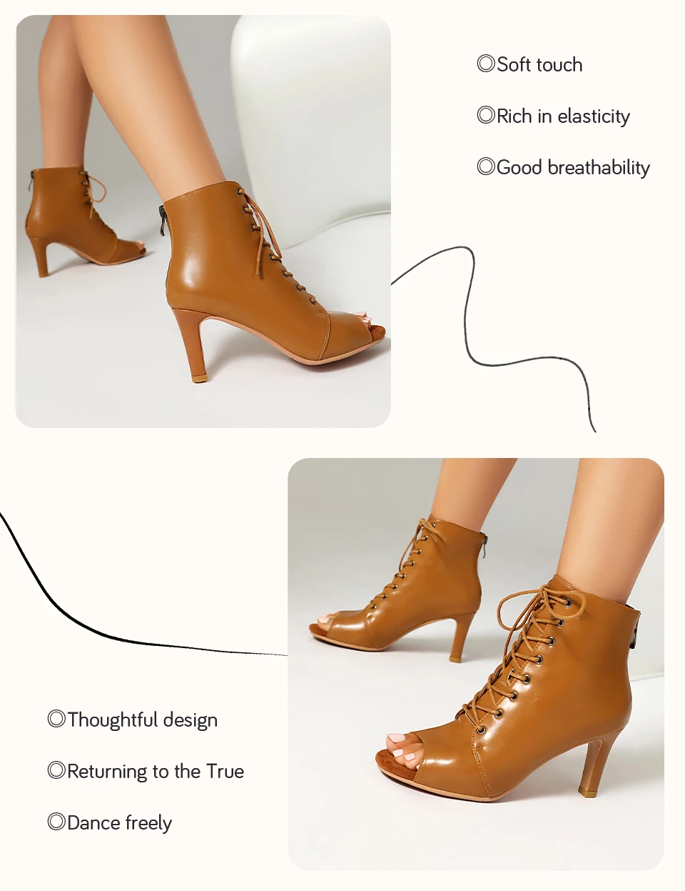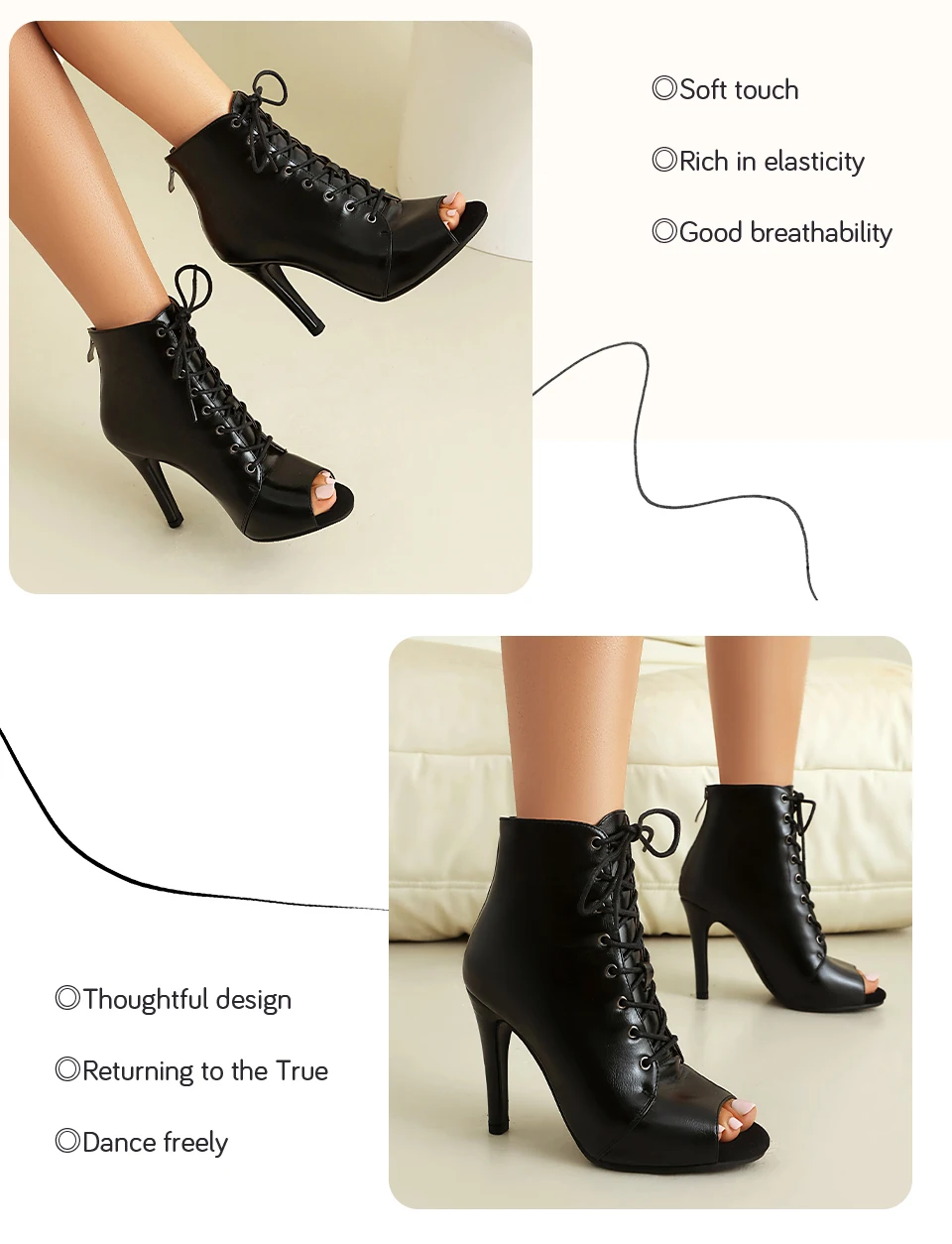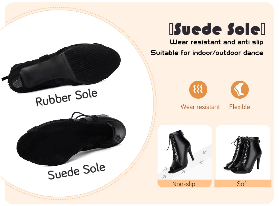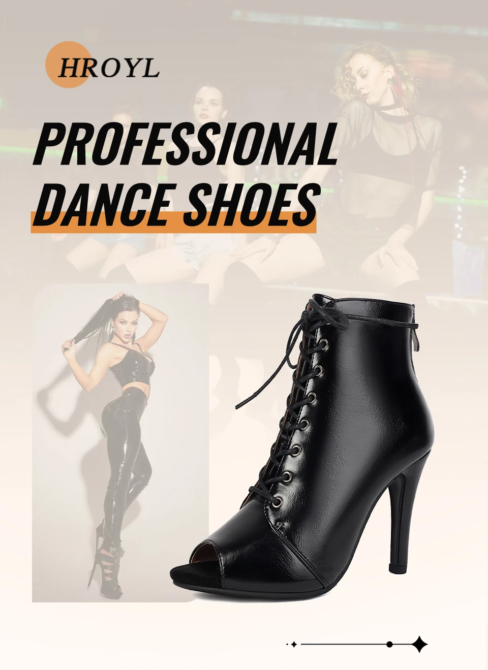 HROYL Jazz Dance High Heels Fish Mouth Short Boots Special Dance Shoes and Nude Boots Dance Shoes Women Large Size Soft Sole