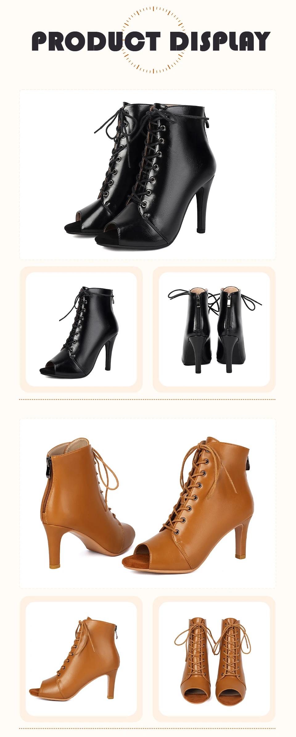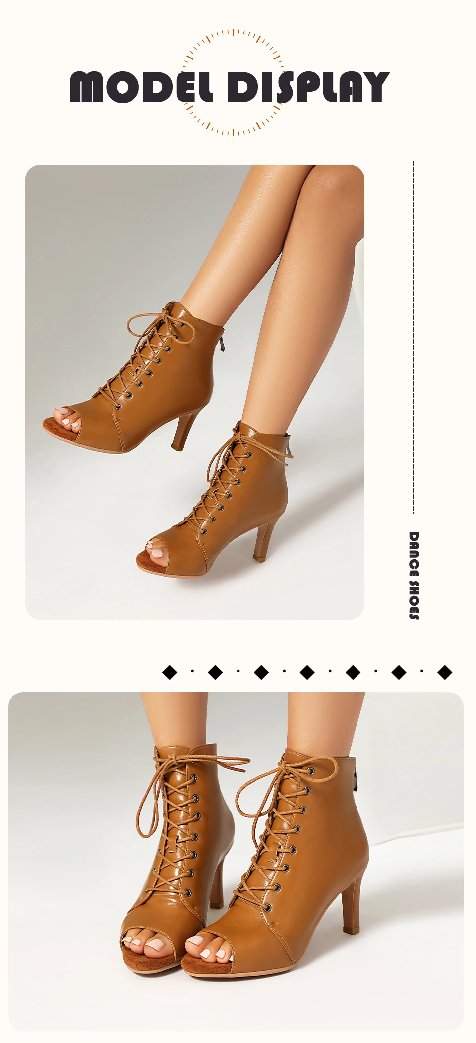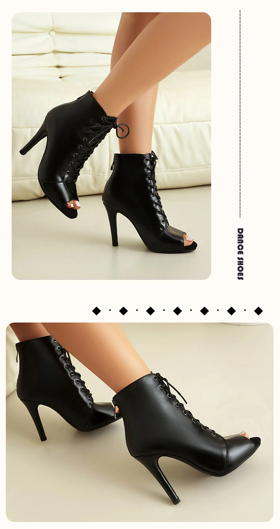 HROYL Jazz Dance High Heels Fish Mouth Short Boots Special Dance Shoes and Nude Boots Dance Shoes Women Large Size Soft Sole