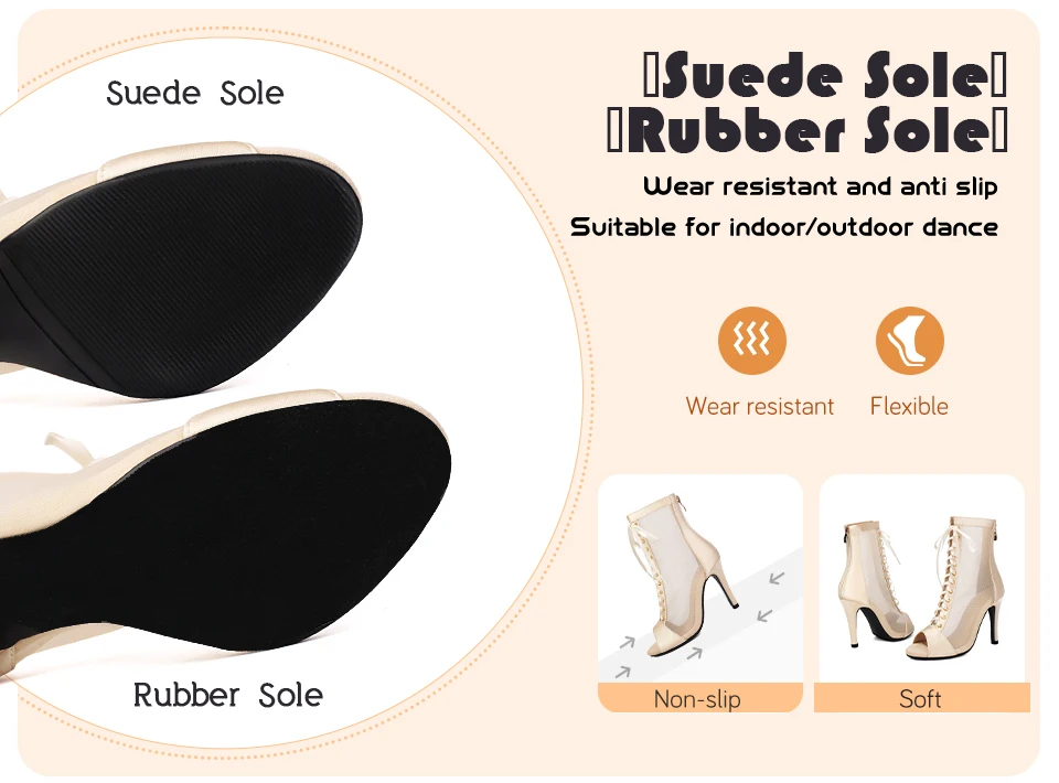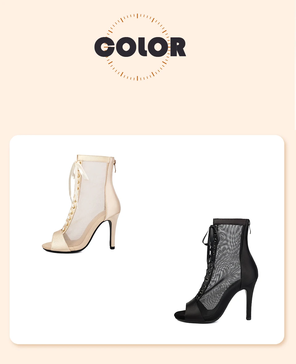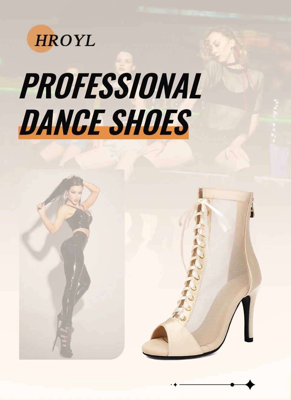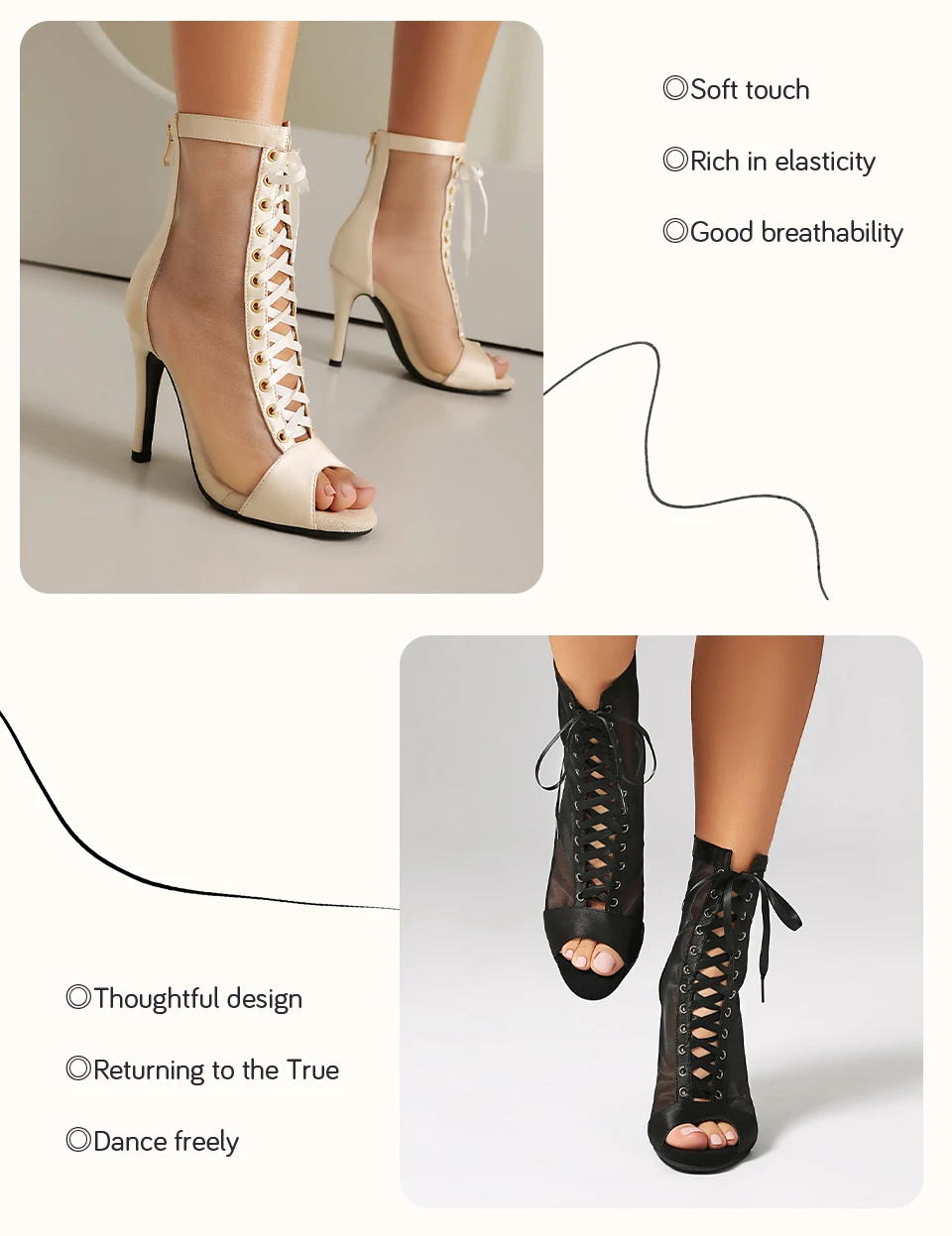 HROYL Jazz Dance Shoes High Heels Women Lace-up Mesh Sandals Sexy Short Boots Summer Net Boots Fish Mouth Dance Boots Ballroom