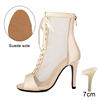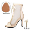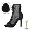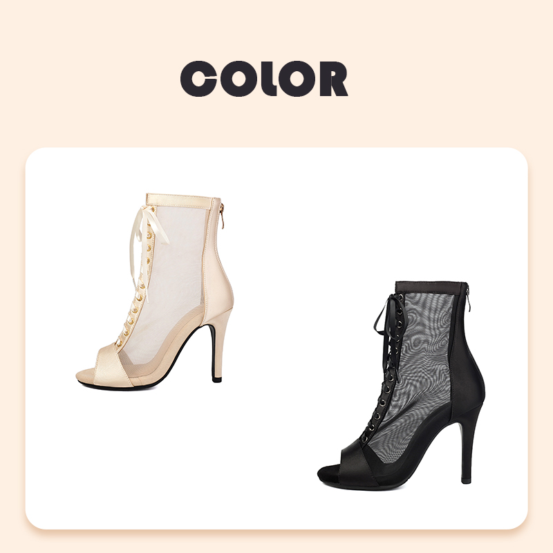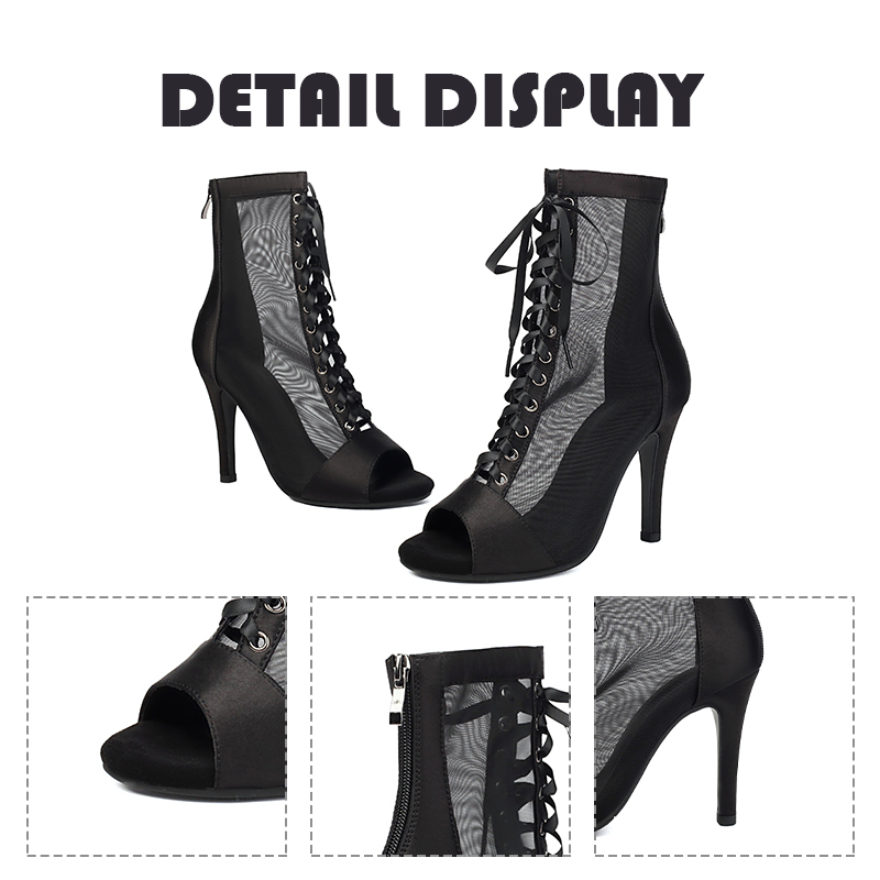 HROYL Jazz Dance Shoes High Heels Women Lace-up Mesh Sandals Sexy Short Boots Summer Net Boots Fish Mouth Dance Boots Ballroom