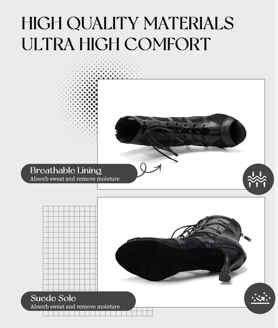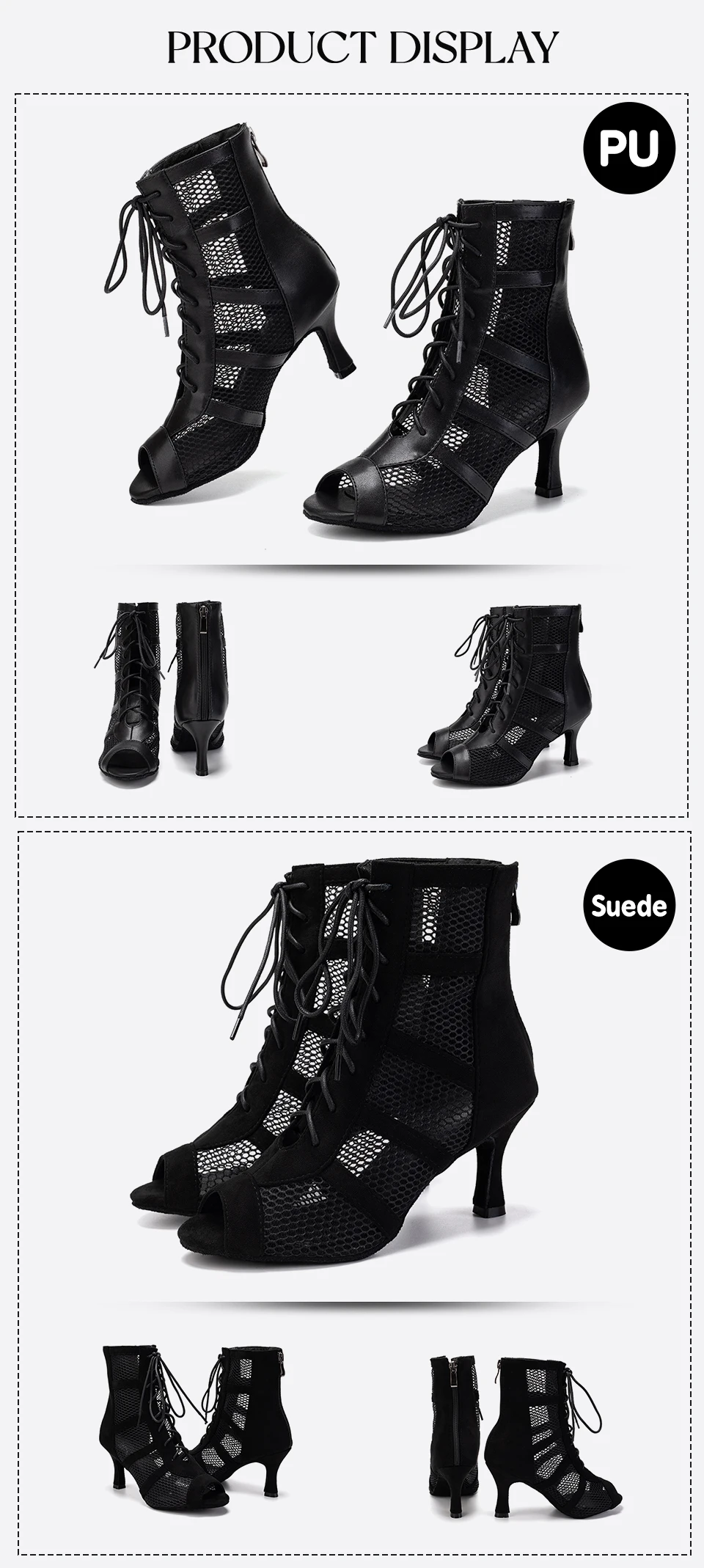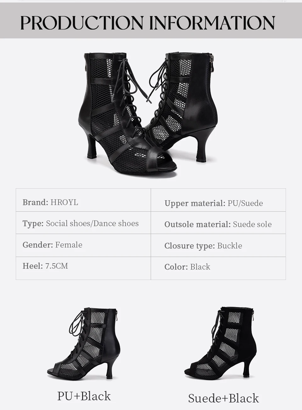 HROYL Ladies Dancing Shoes High Heels Latin Dance Shoes Women Girls Pole Competition Black Latin Boots Party adjustable instep