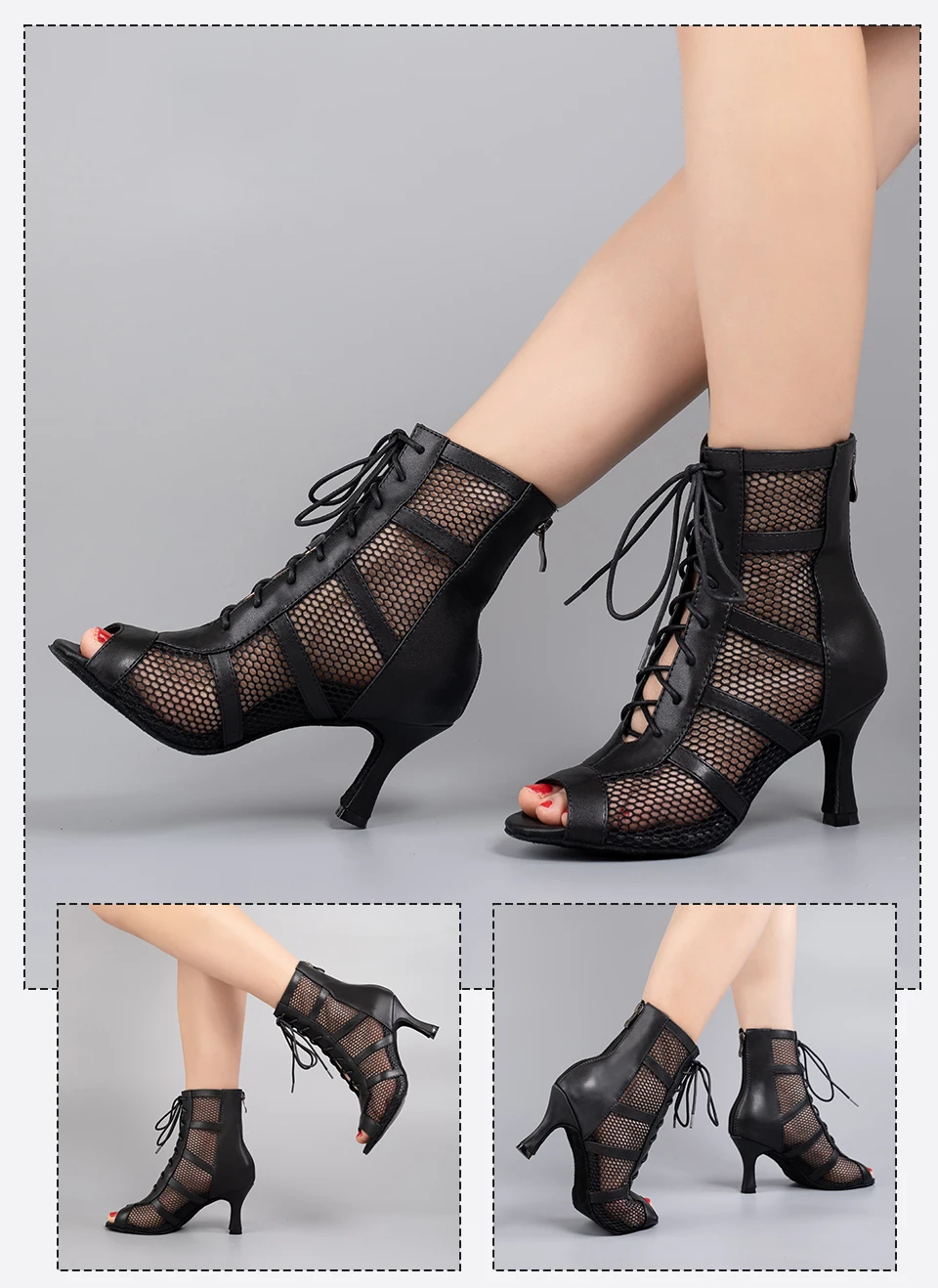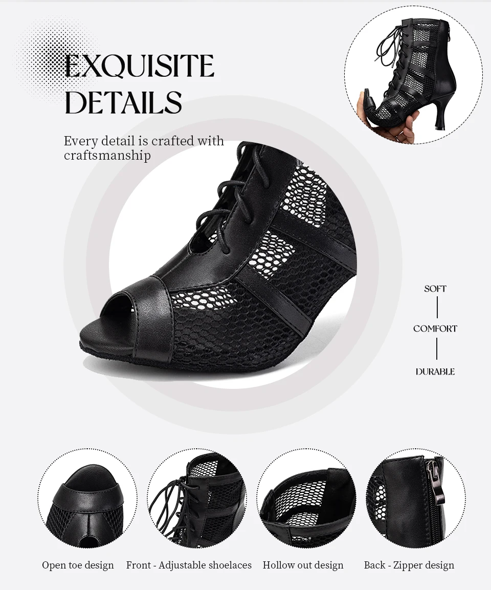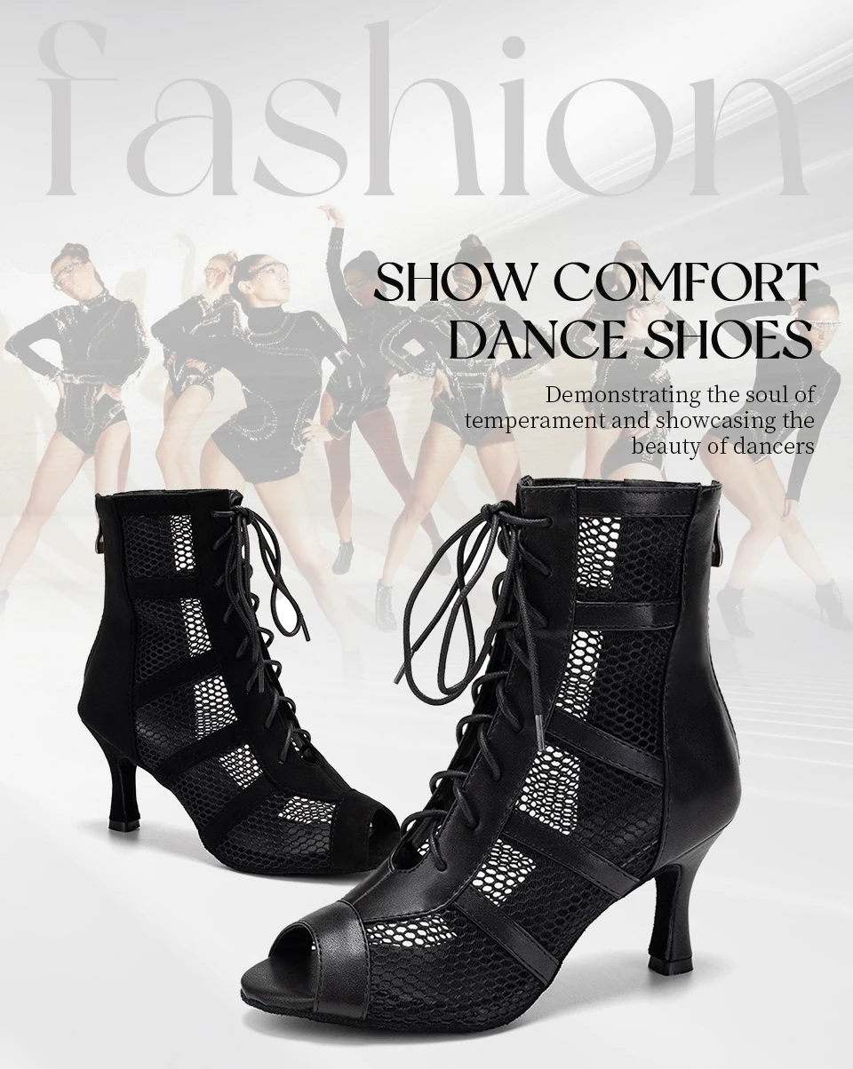 HROYL Ladies Dancing Shoes High Heels Latin Dance Shoes Women Girls Pole Competition Black Latin Boots Party adjustable instep