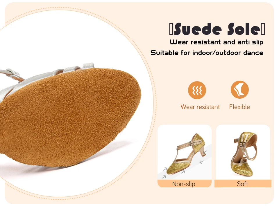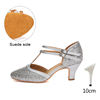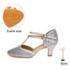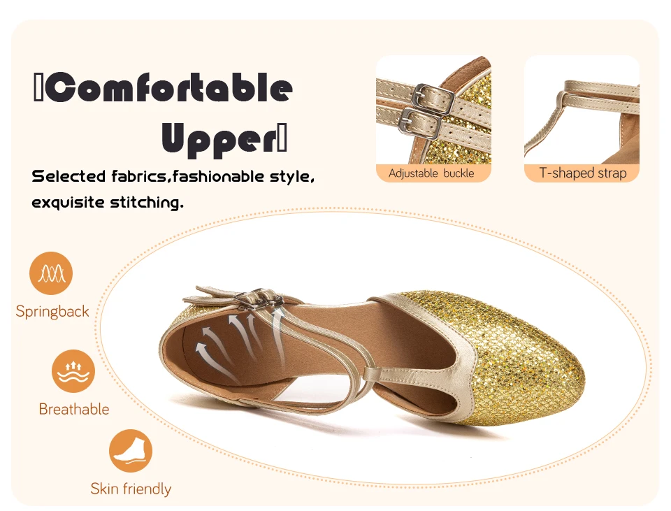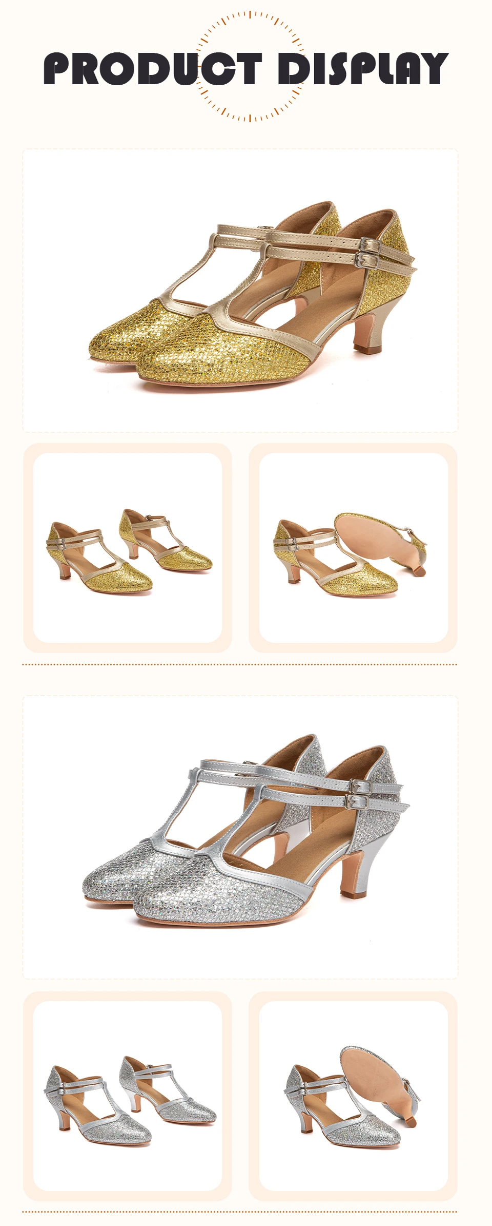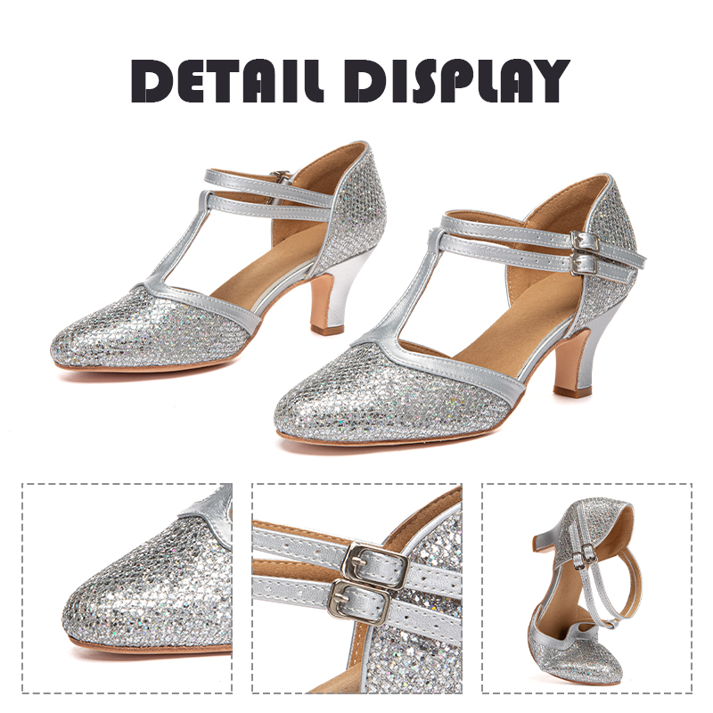 HROYL Ladies Sequined Latin Dance Shoes Soft Sole Square Dance Shoes Mid-heeled Four Seasons Modern Closed Toe Dance Shoes Woman