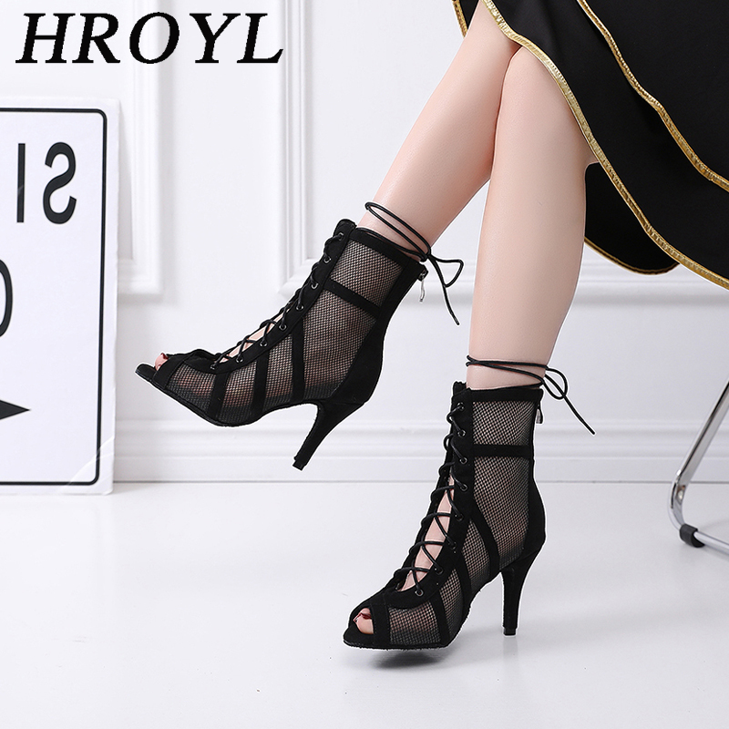 HROYL Latin Ballroom Dance Shoes for Women Lace-up Practice Closed Toe Modern Salsa Dance Teaching Performance Dancing Shoes