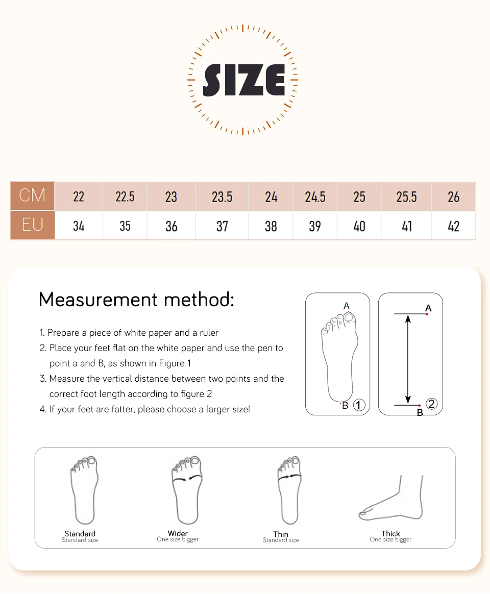 Size Tip:Please Measure your feet length before place the order, then refer to the size chart to choose the size according to your feet length.