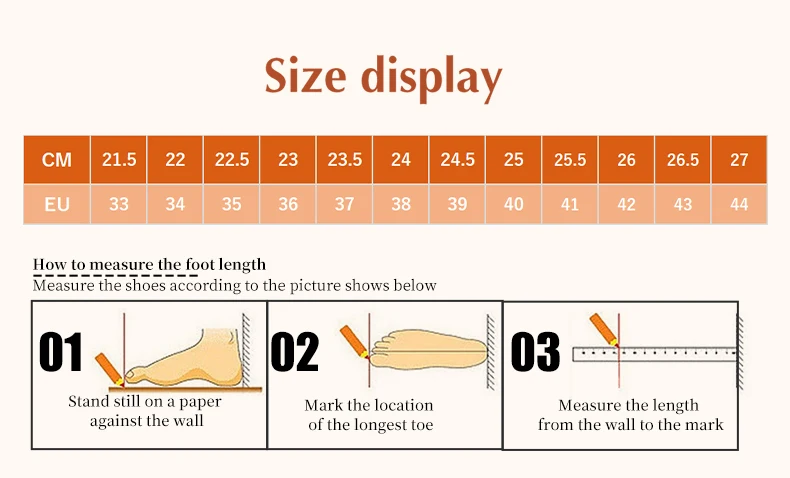 Size Tip:Please Measure your feet length before place the order, then refer to the size chart to choose the size according to your feet length.