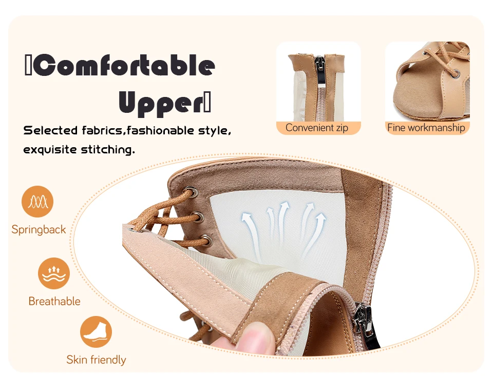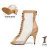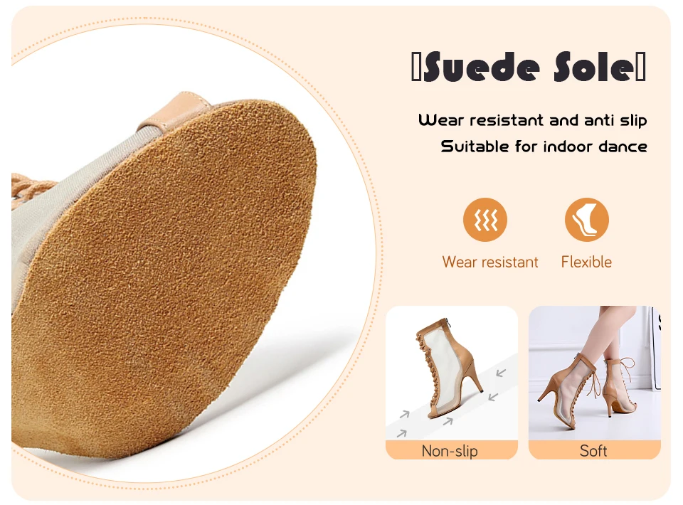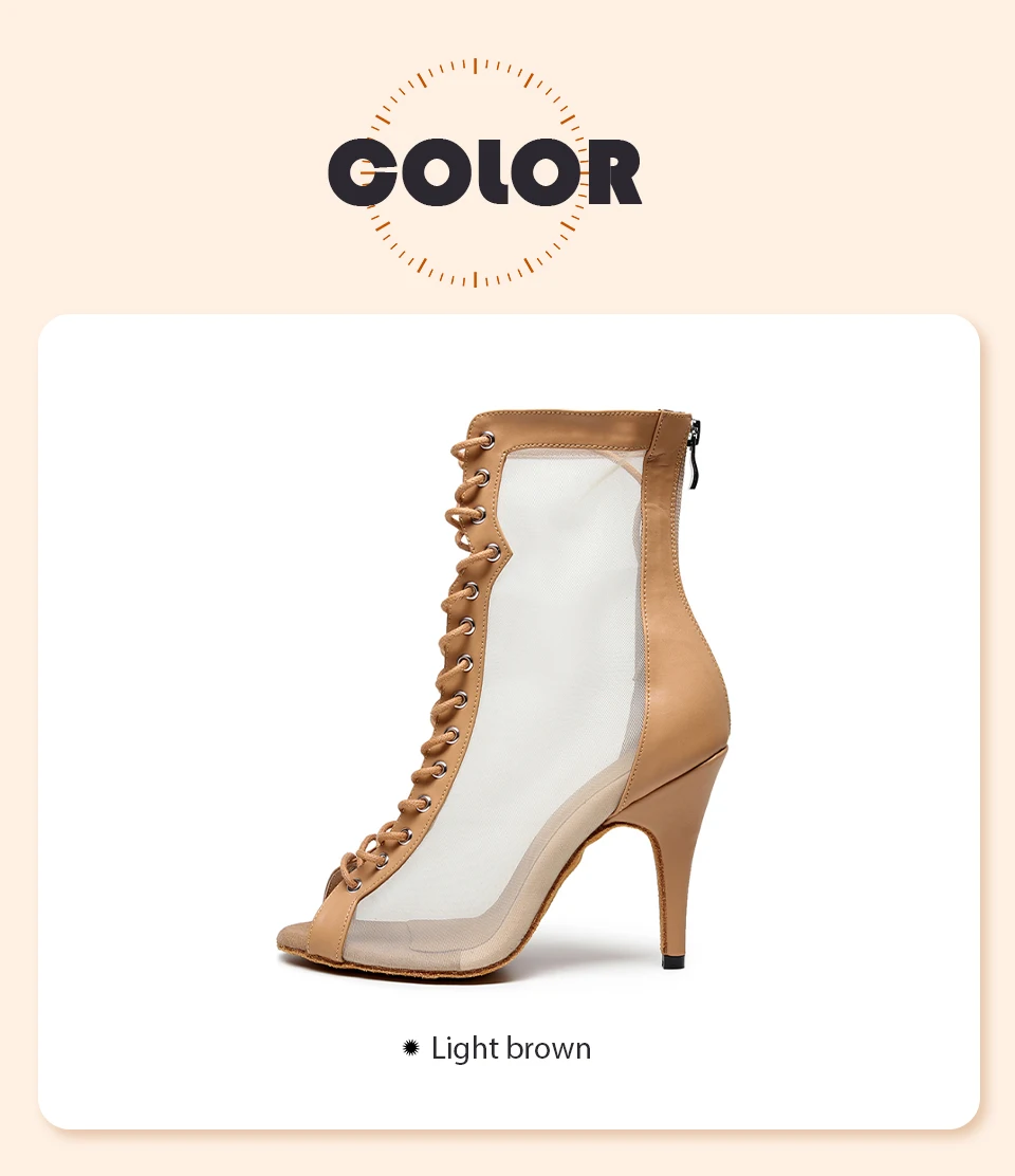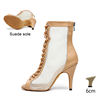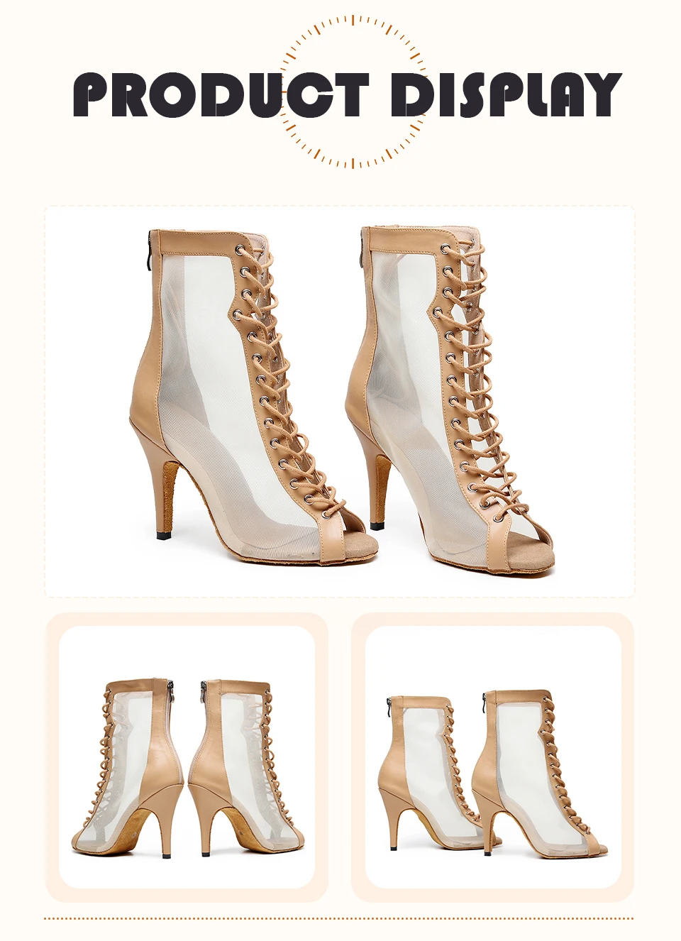 HROYL Latin Dance Shoes Women Jazz Dance High Heels Mesh Sandals Summer Dancing Short Boots Fish Mouth Lace-up Net Boots Girls