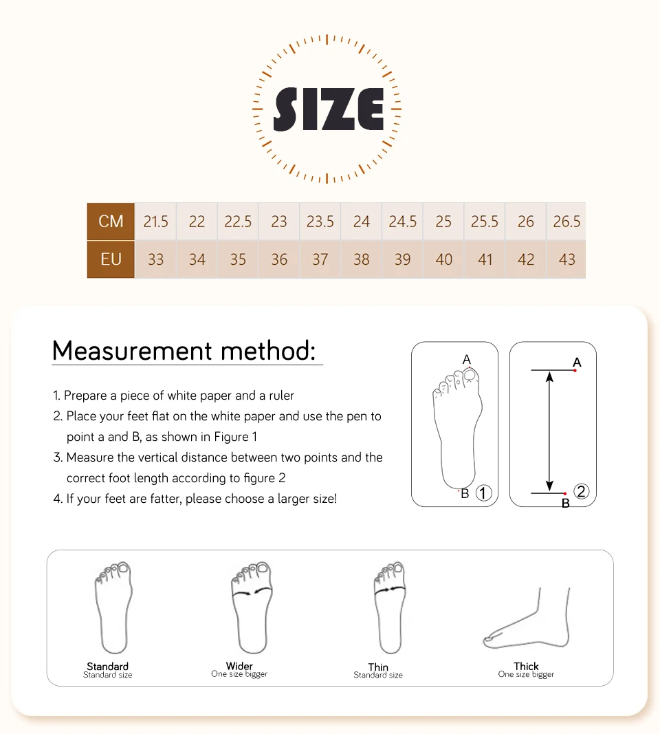 The size chart is not a standard EU/US, please choose the size according to your foot length (CM).