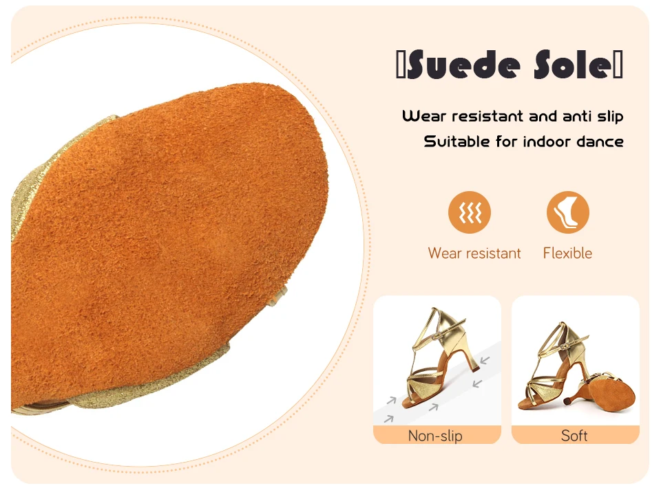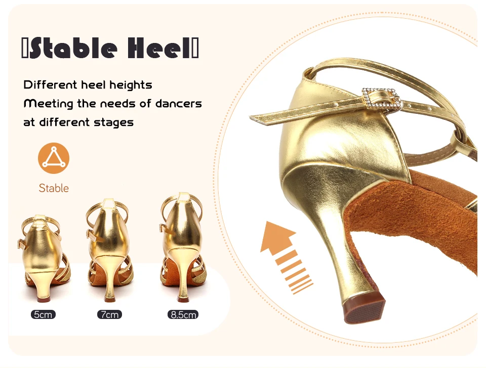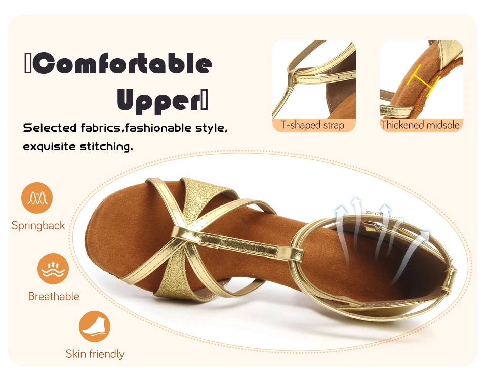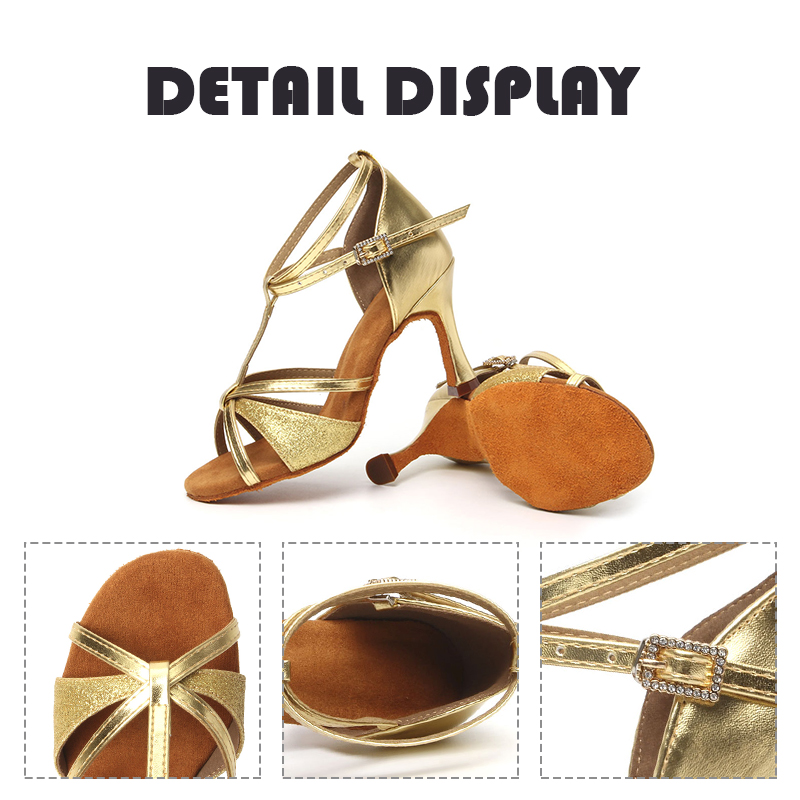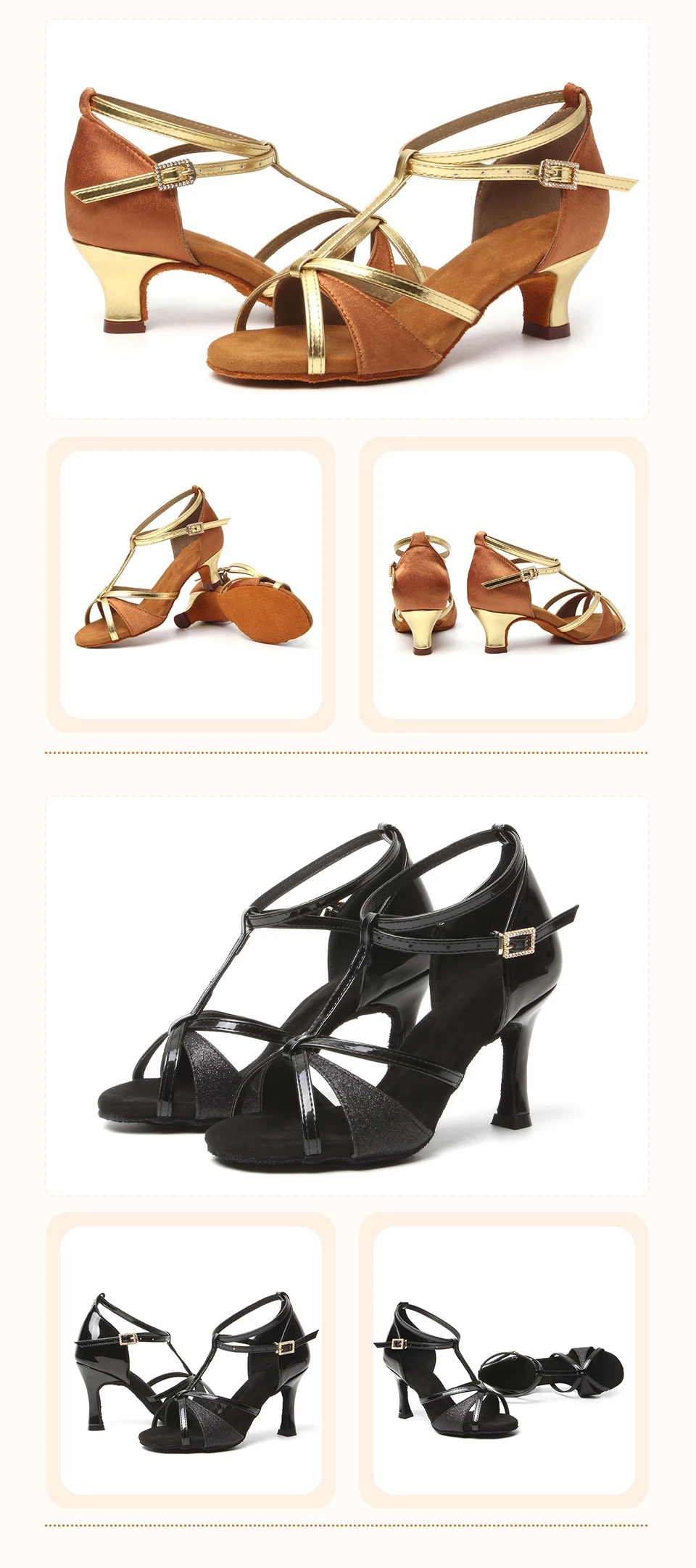 HROYL Latin Dance Shoes Women Modern Ballroom Dance Shoes Mid-high Heel Sequined Satin Dance Shoes Tango Waltz Salsa Sandals