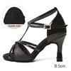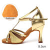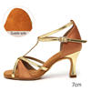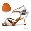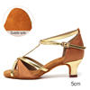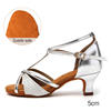 HROYL Latin Dance Shoes Women Modern Ballroom Dance Shoes Mid-high Heel Sequined Satin Dance Shoes Tango Waltz Salsa Sandals
