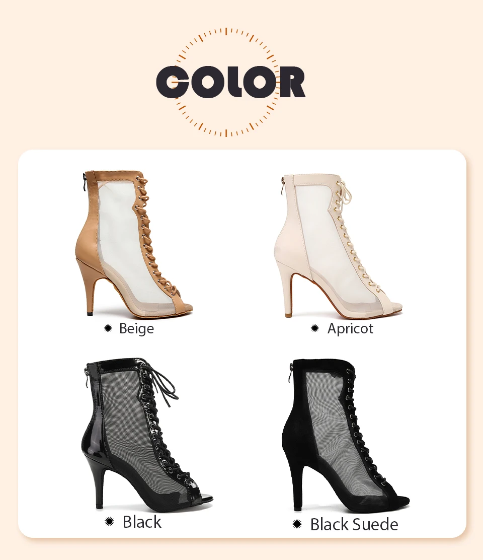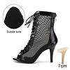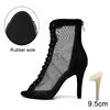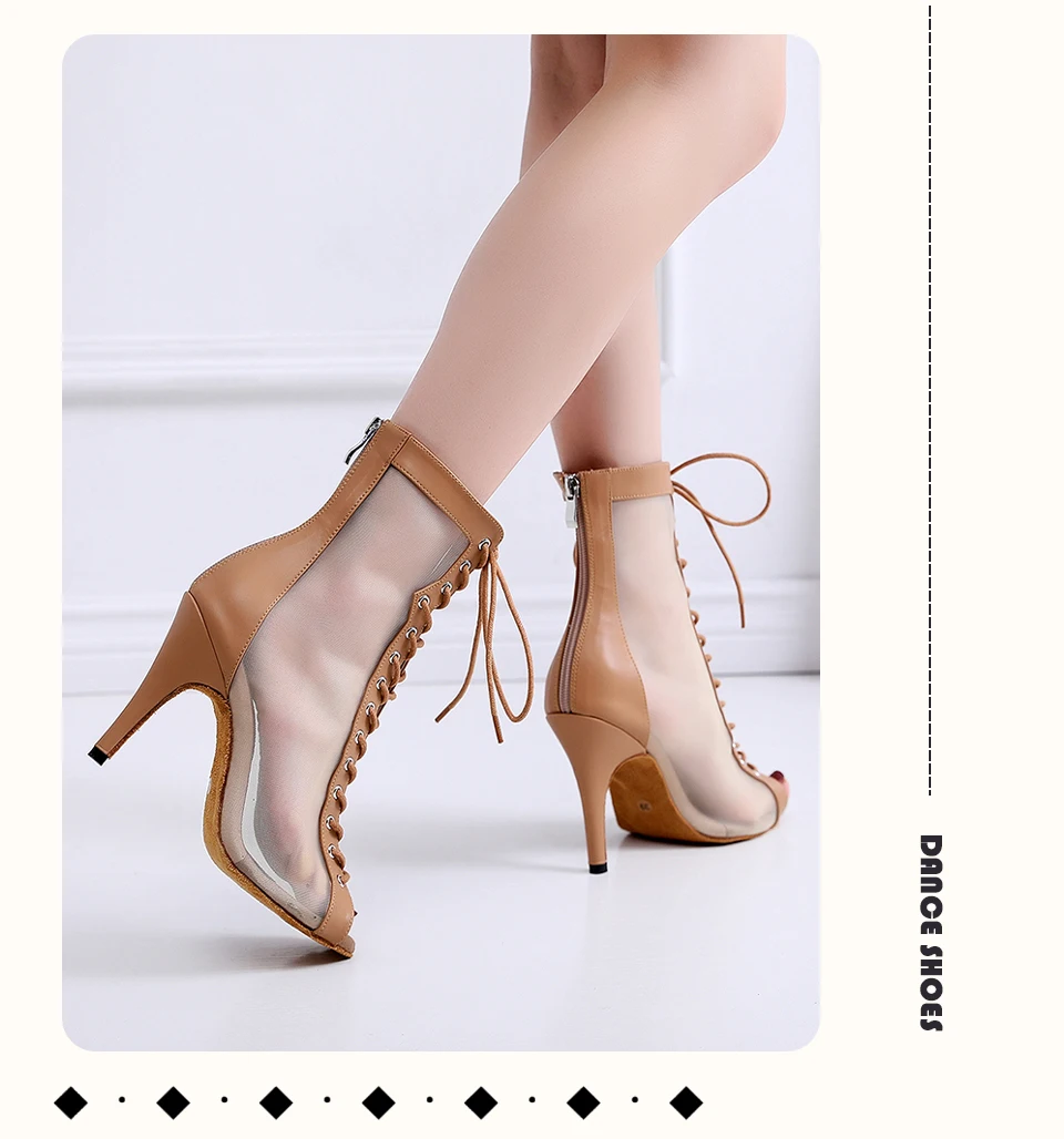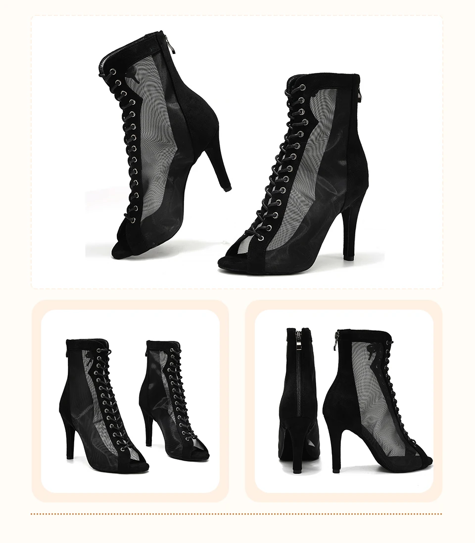 HROYL Mesh Jazz Dance Short Boots Lace-up Jazz Latin Tango Dance High Heels Plus Size Sandals Fish Mouth Dance Shoes Women