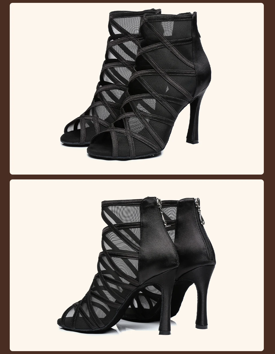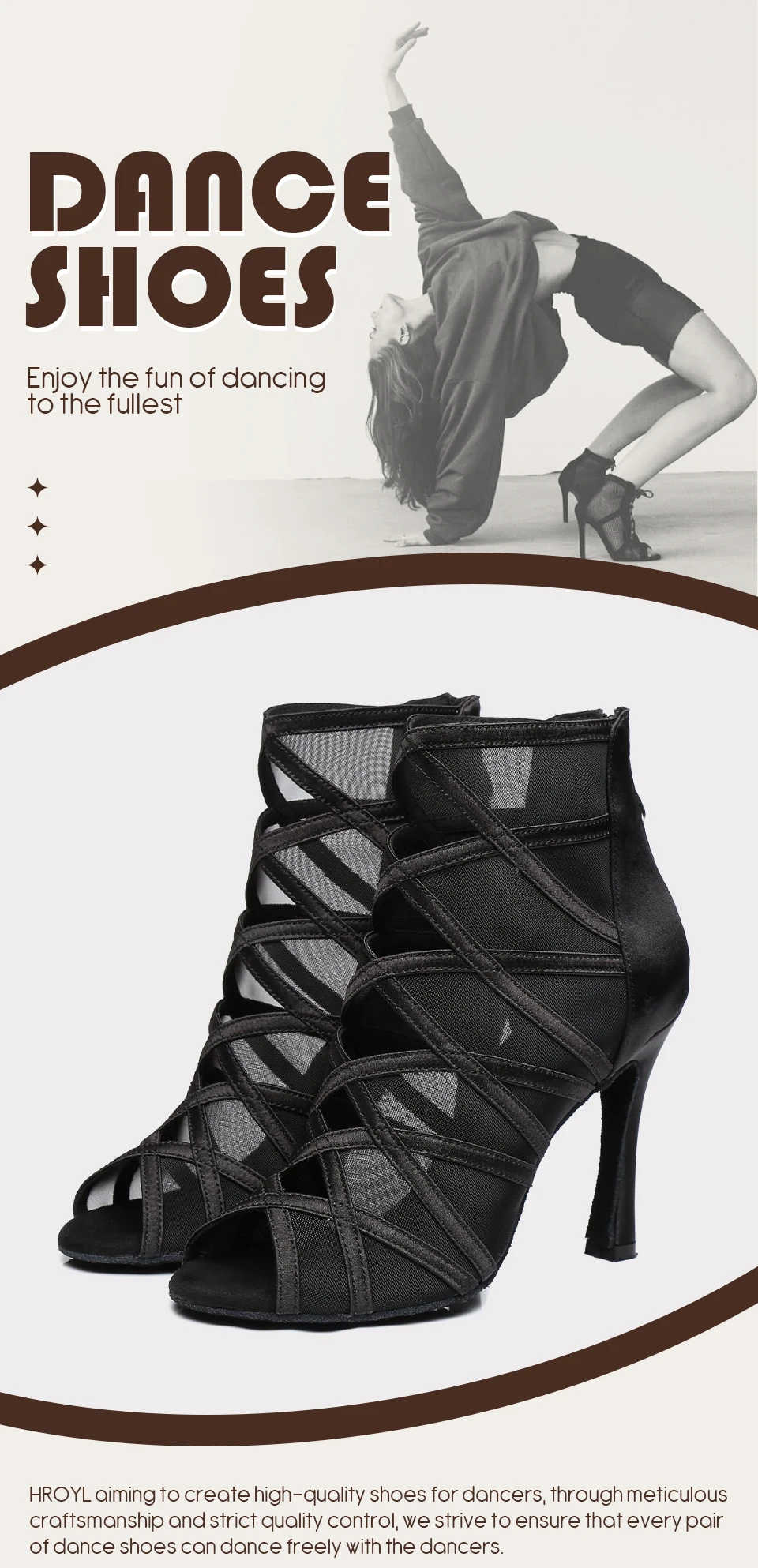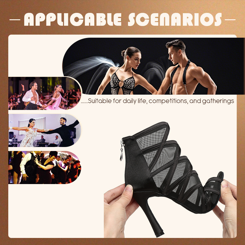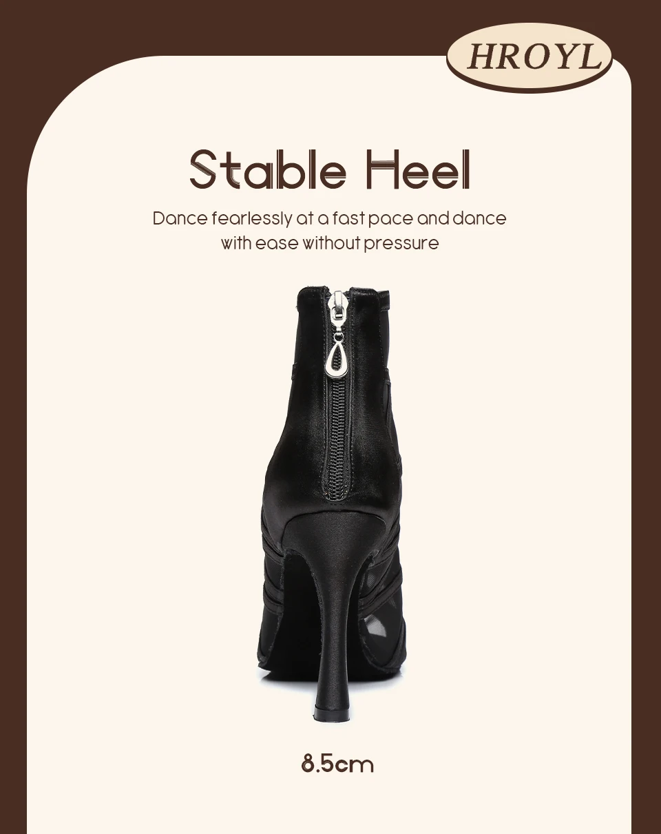 HROYL Mesh Latin Dance-Shoes Women Salsa Jazz Tango Modern Ballroom Dancing Shoes Ladies Soft Bottom Stiletto Heel Dance Boots
