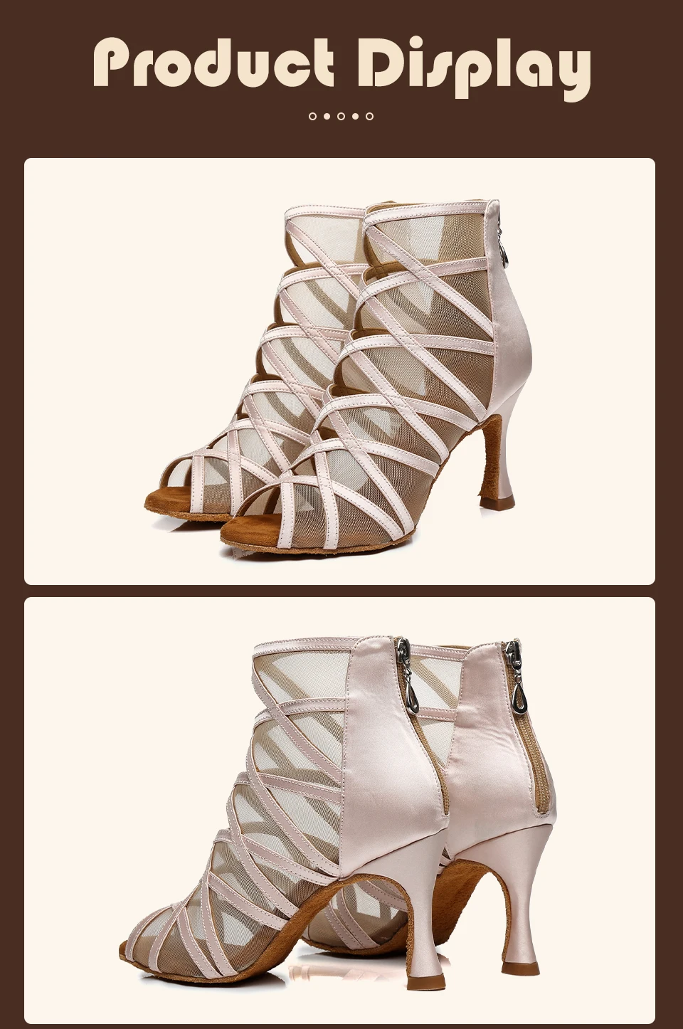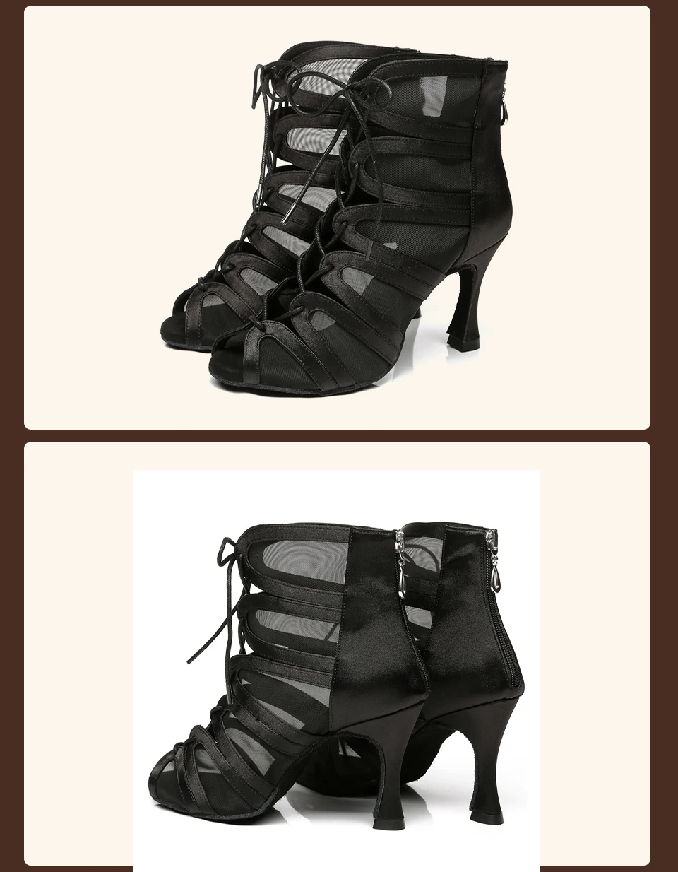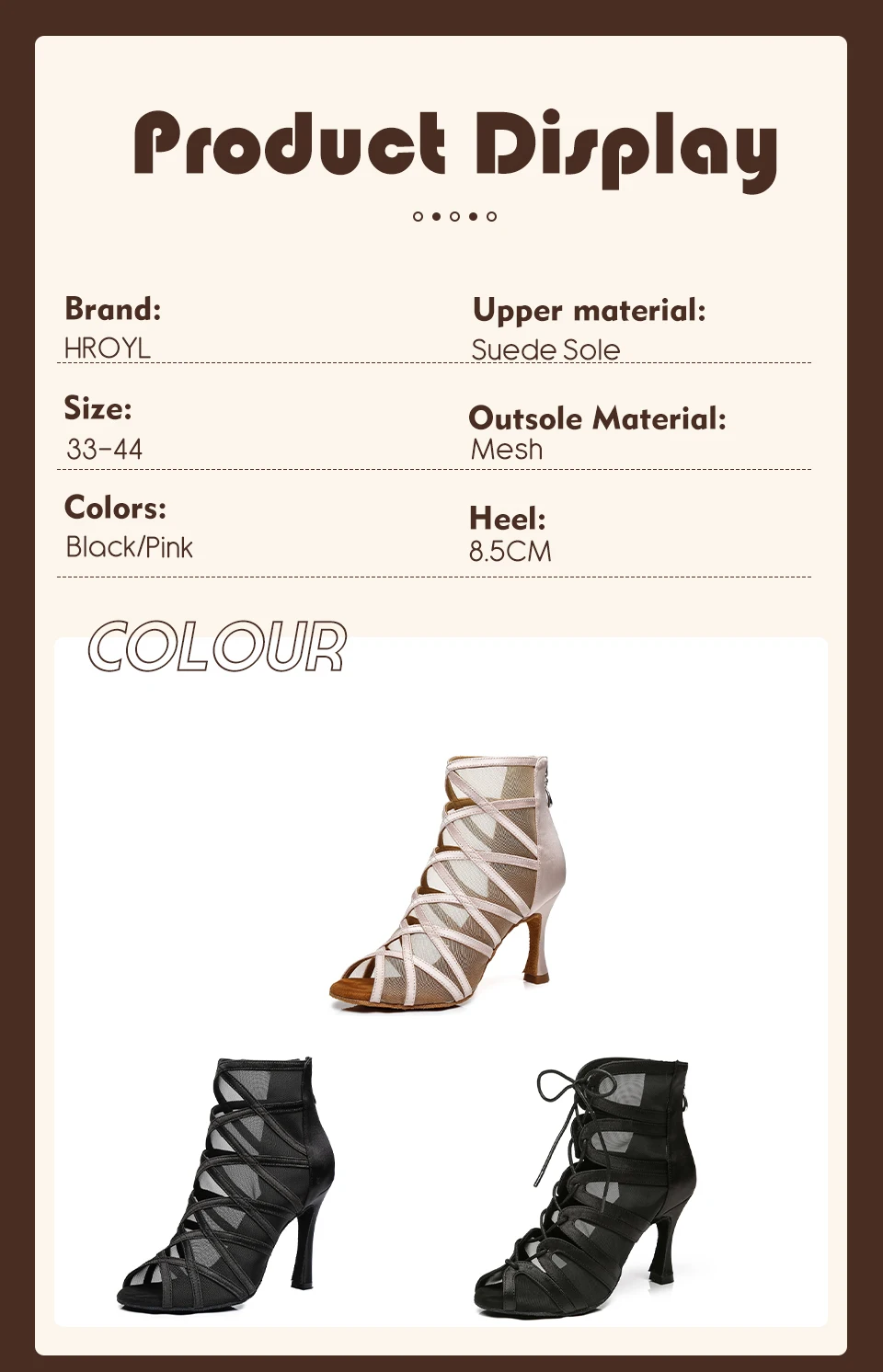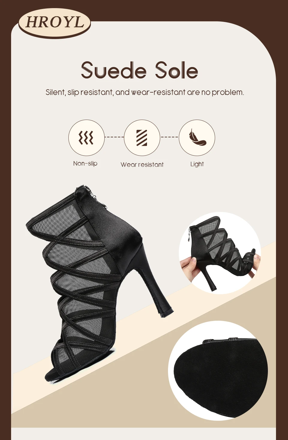 HROYL Mesh Latin Dance-Shoes Women Salsa Jazz Tango Modern Ballroom Dancing Shoes Ladies Soft Bottom Stiletto Heel Dance Boots