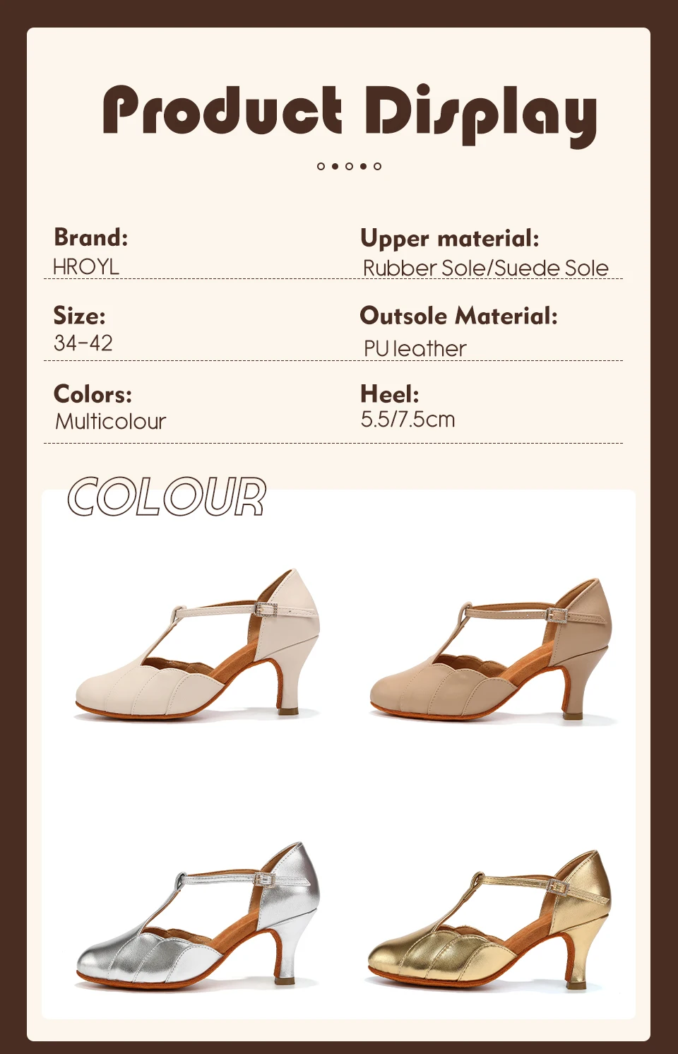 HROYL Modern Dance Shoes Women Latin Dancing Shoes for Girls Ballroom Tango Shoes Standard Salsa Practice Training Heels 5/7.5cm