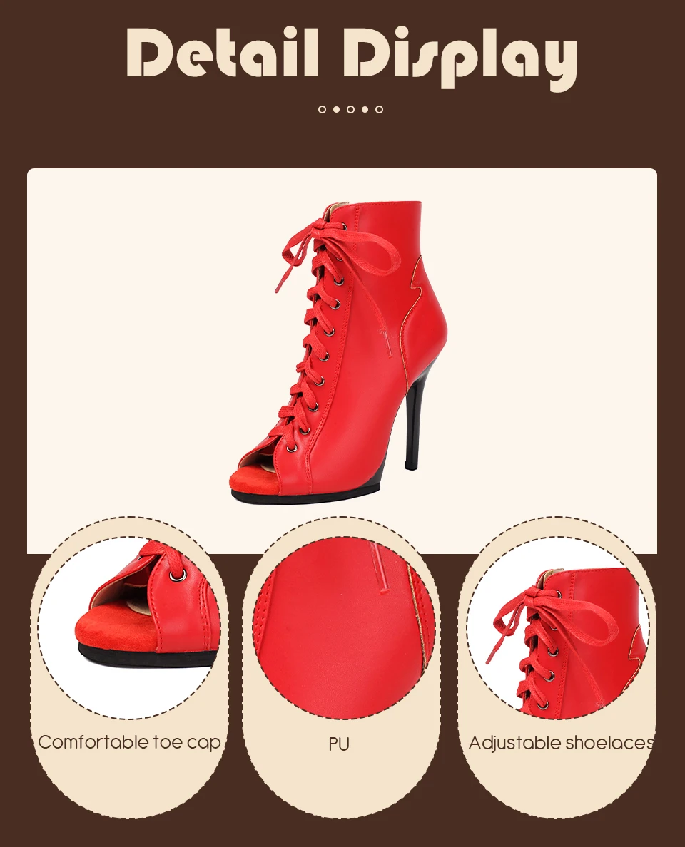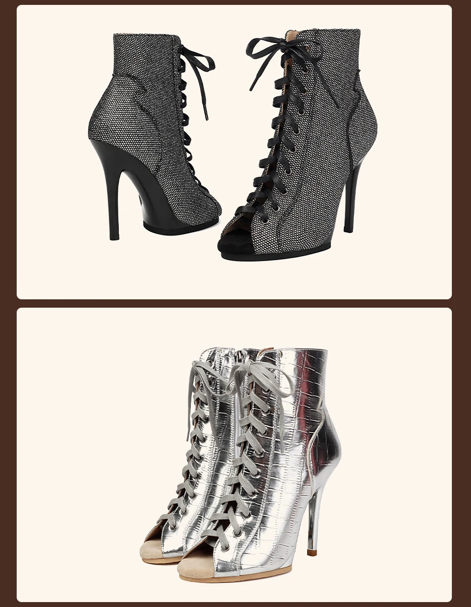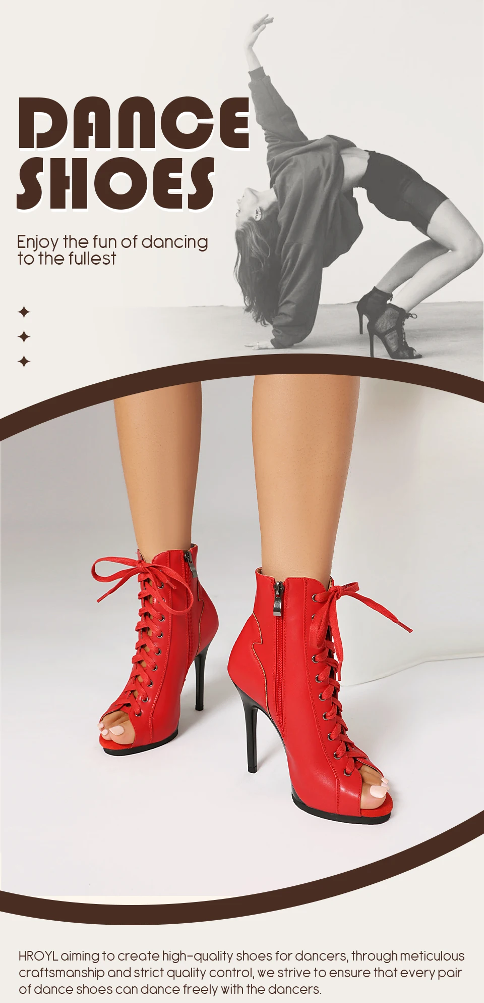HROYL NEW Ballroom Dance Shoes Women Sexy PU Platform Jazz Latin Custom Dance Boots Lace-up High Heels Dance Shoes Soft-soled