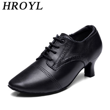 HROYL NEW Ballroom Dance Shoes Women Sexy PU Platform Jazz Latin Custom Dance Boots Lace-up High Heels Dance Shoes Soft-soled