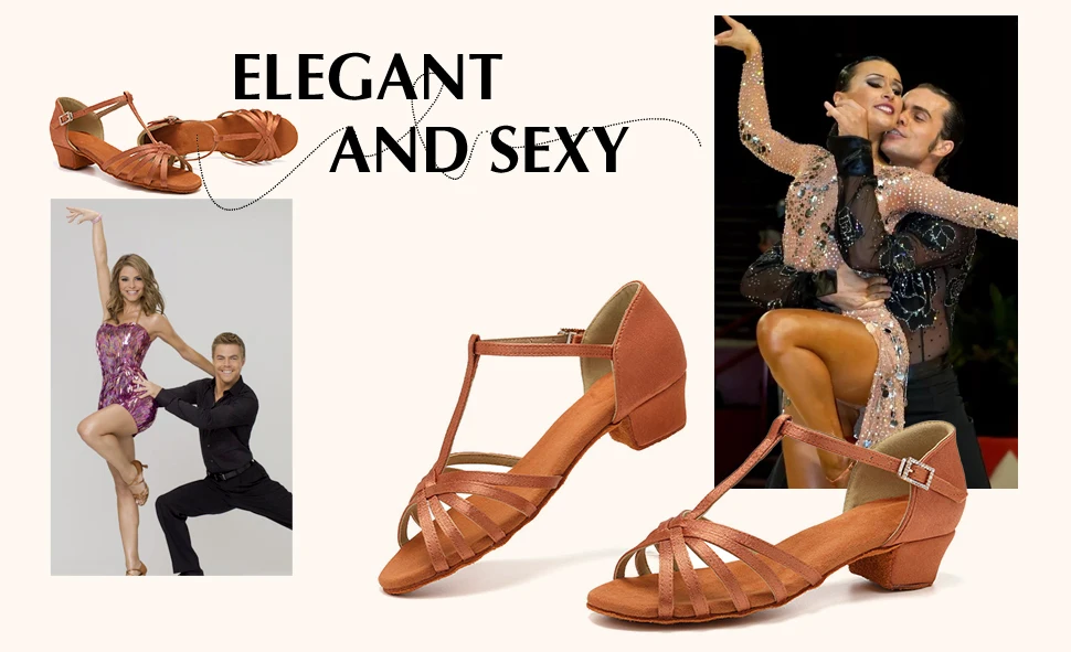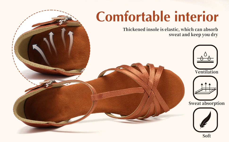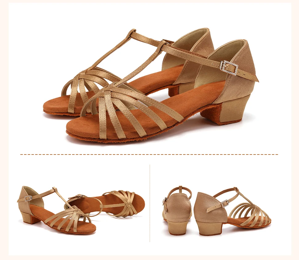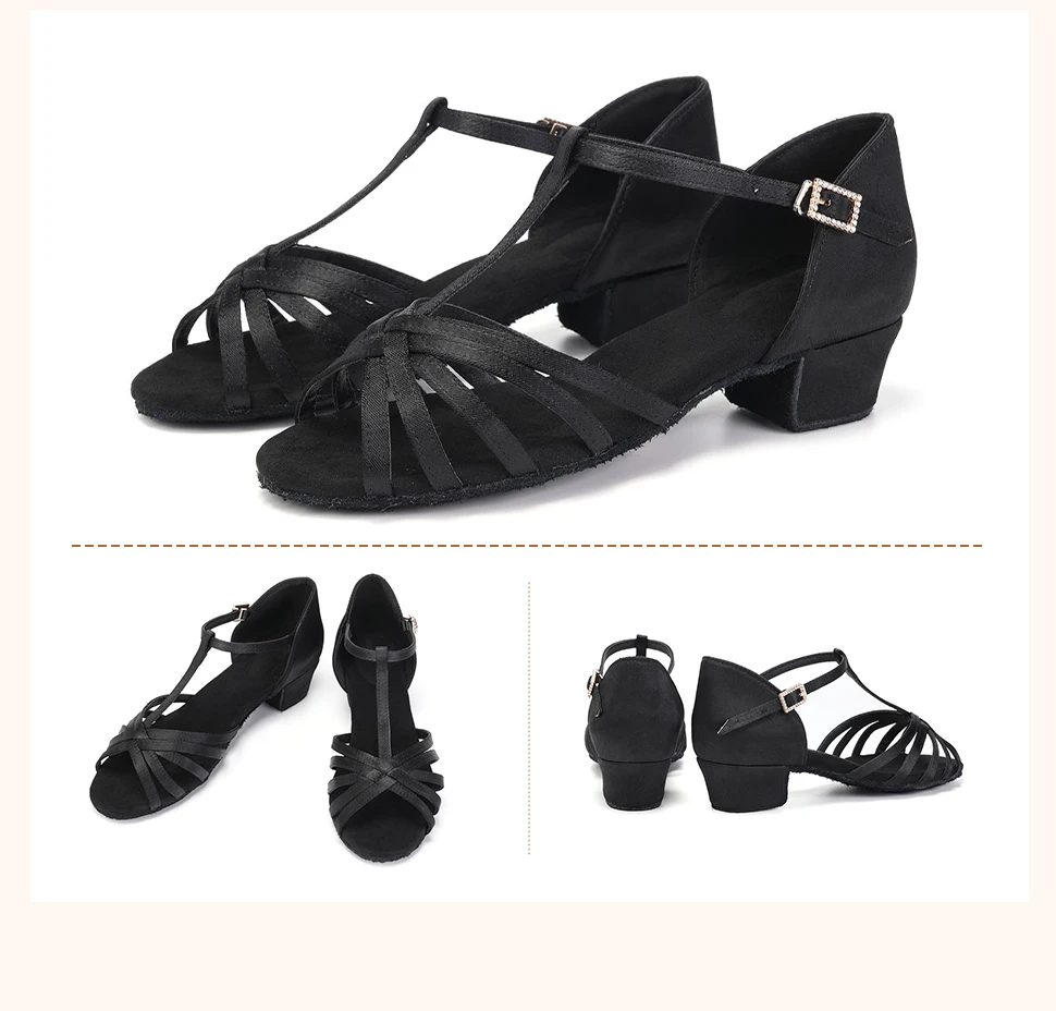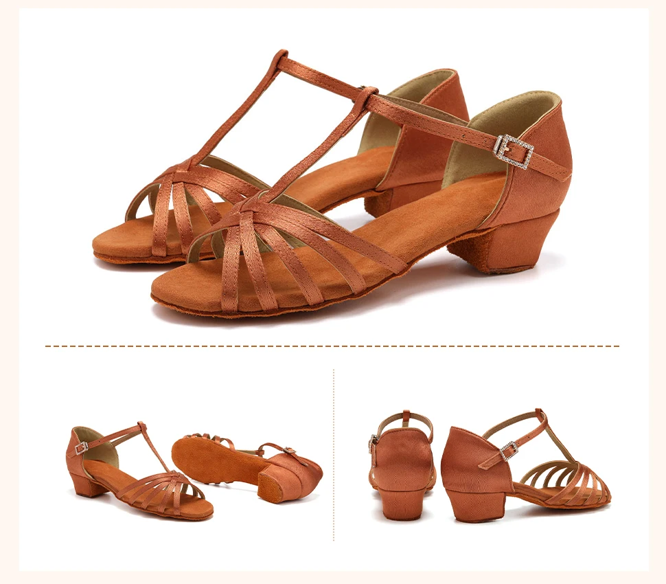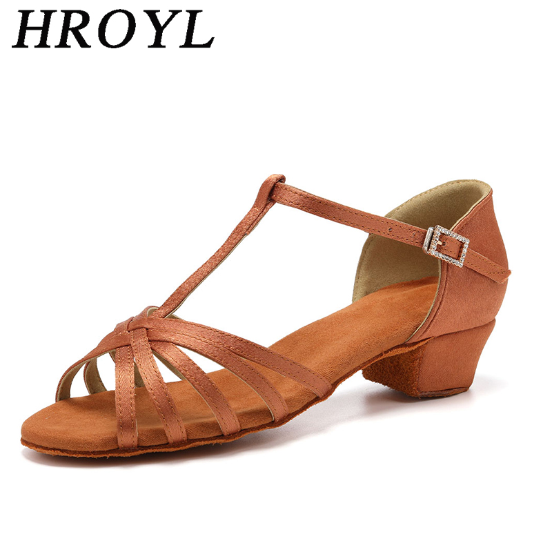 HROYL NEW Ballroom Dancing Shoes Latin Dance Shoes Woman Dance Shoes for Girls Practice Tango Salsa Sandals Party Low Heels