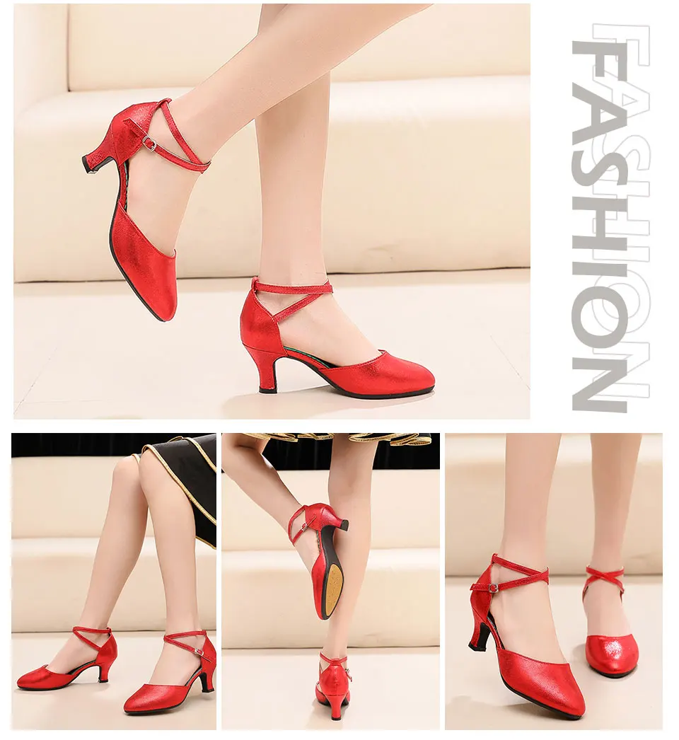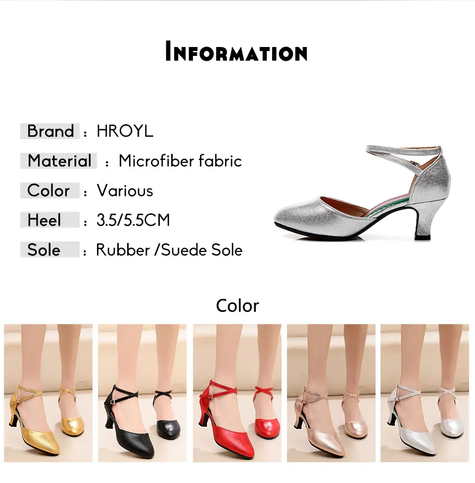 Ballroom Dance Shoes For Women Latin Dancing Sandals Salsa Tango Shoes Girls 3.5/5.5 CM Heel Suede Sole and Rubber Sole HROYL