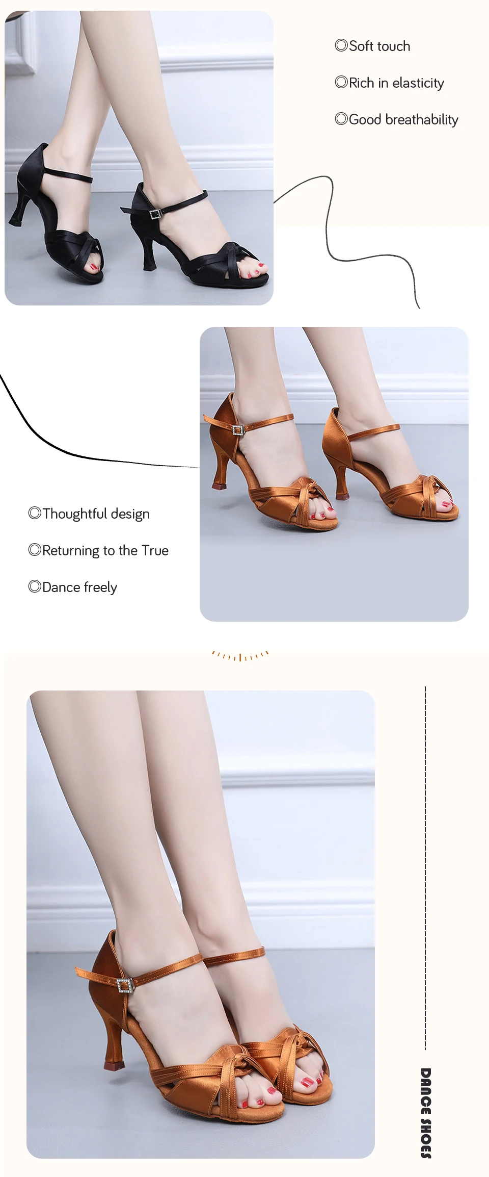 HROYL NEW Silk Ladies High-heeled Dance Shoes New Latin Dance Shoes Soft-soled Dance Shoes National Standard Dance Shoes Cha Cha