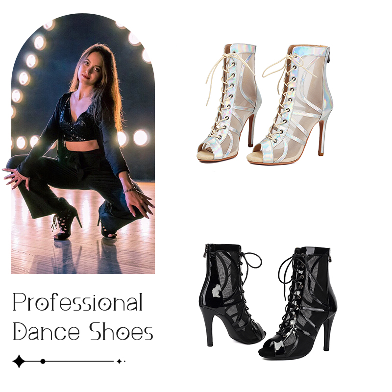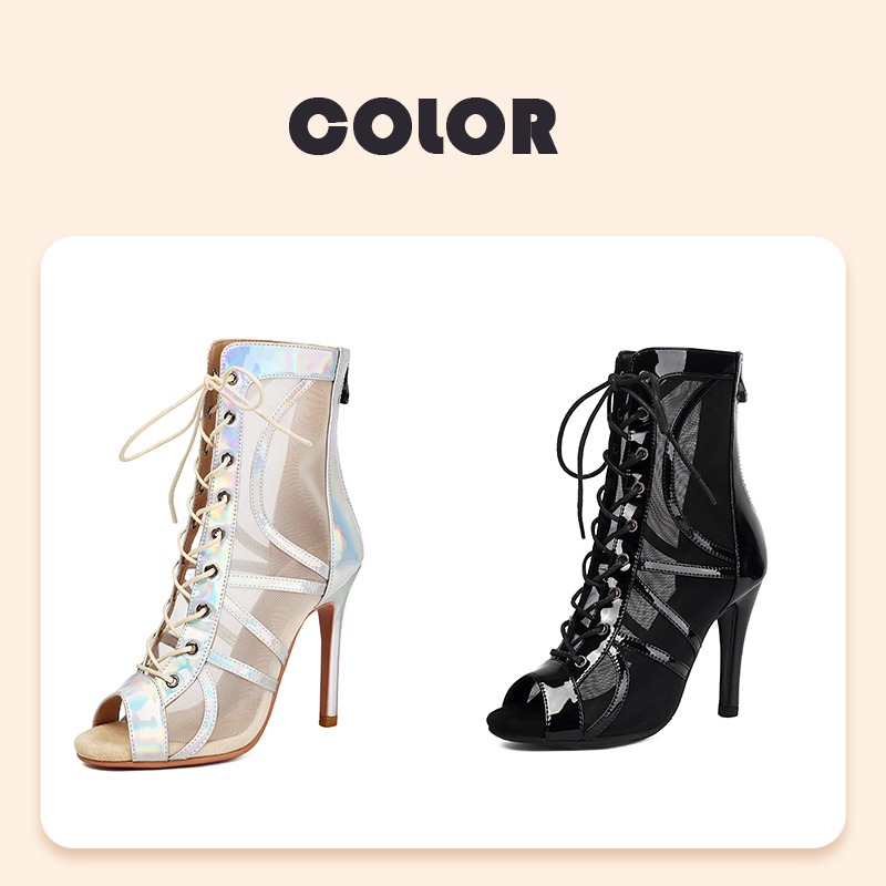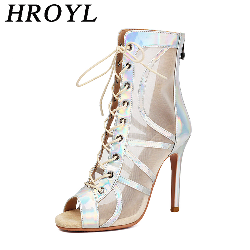 HROYL Patent Leather Latin Dance Shoes Women High-Top Jazz Ankle Boots Girls Ballroom Salsa Tango Party Dancing Shoes High Heels
