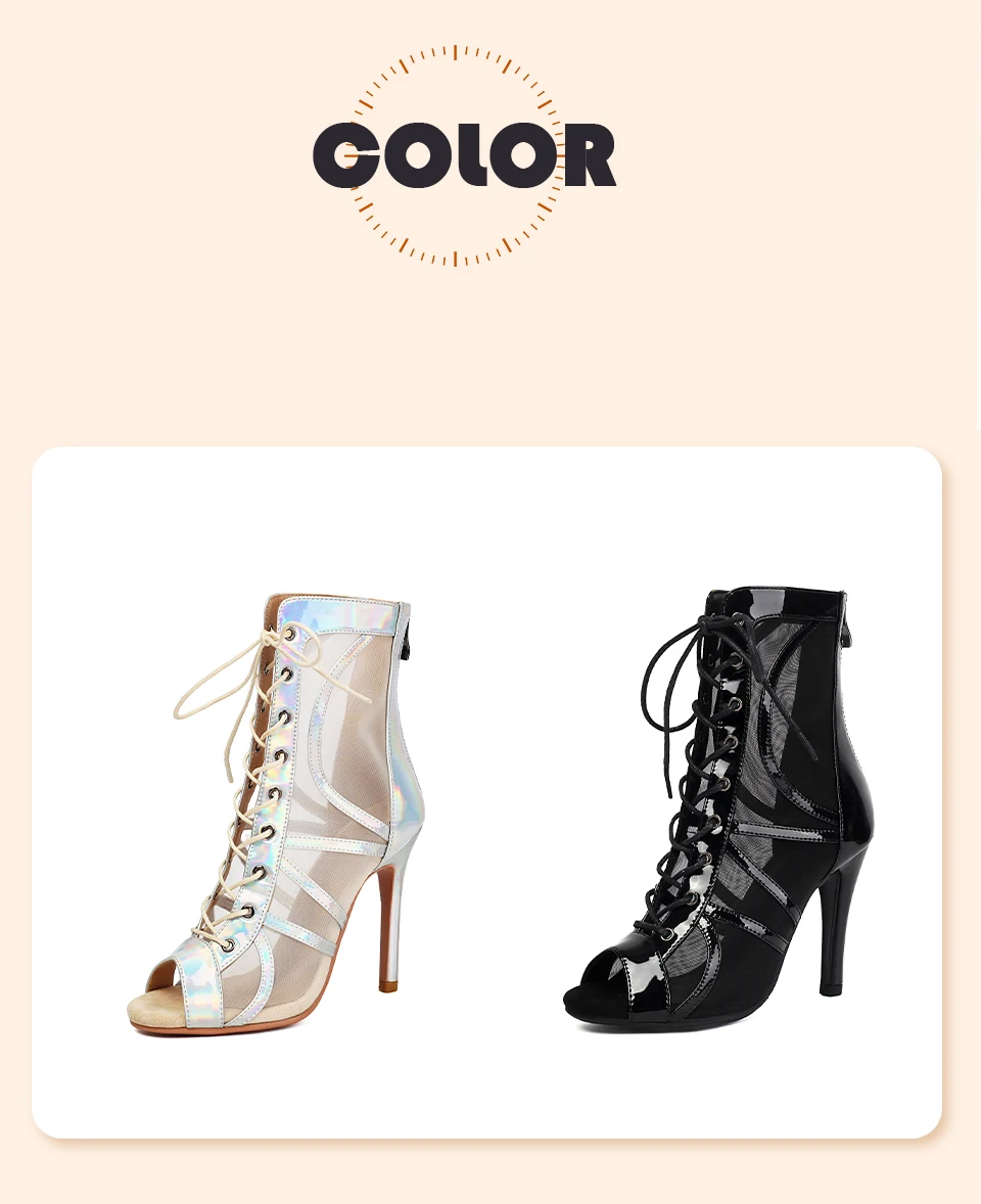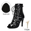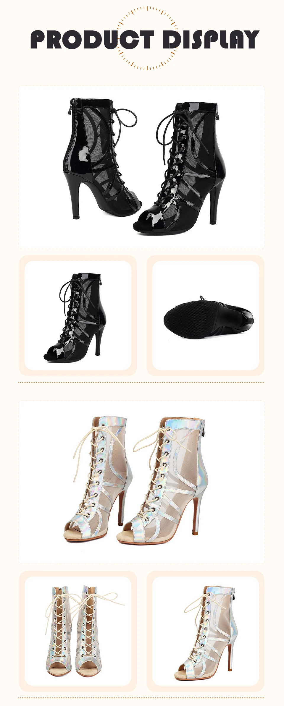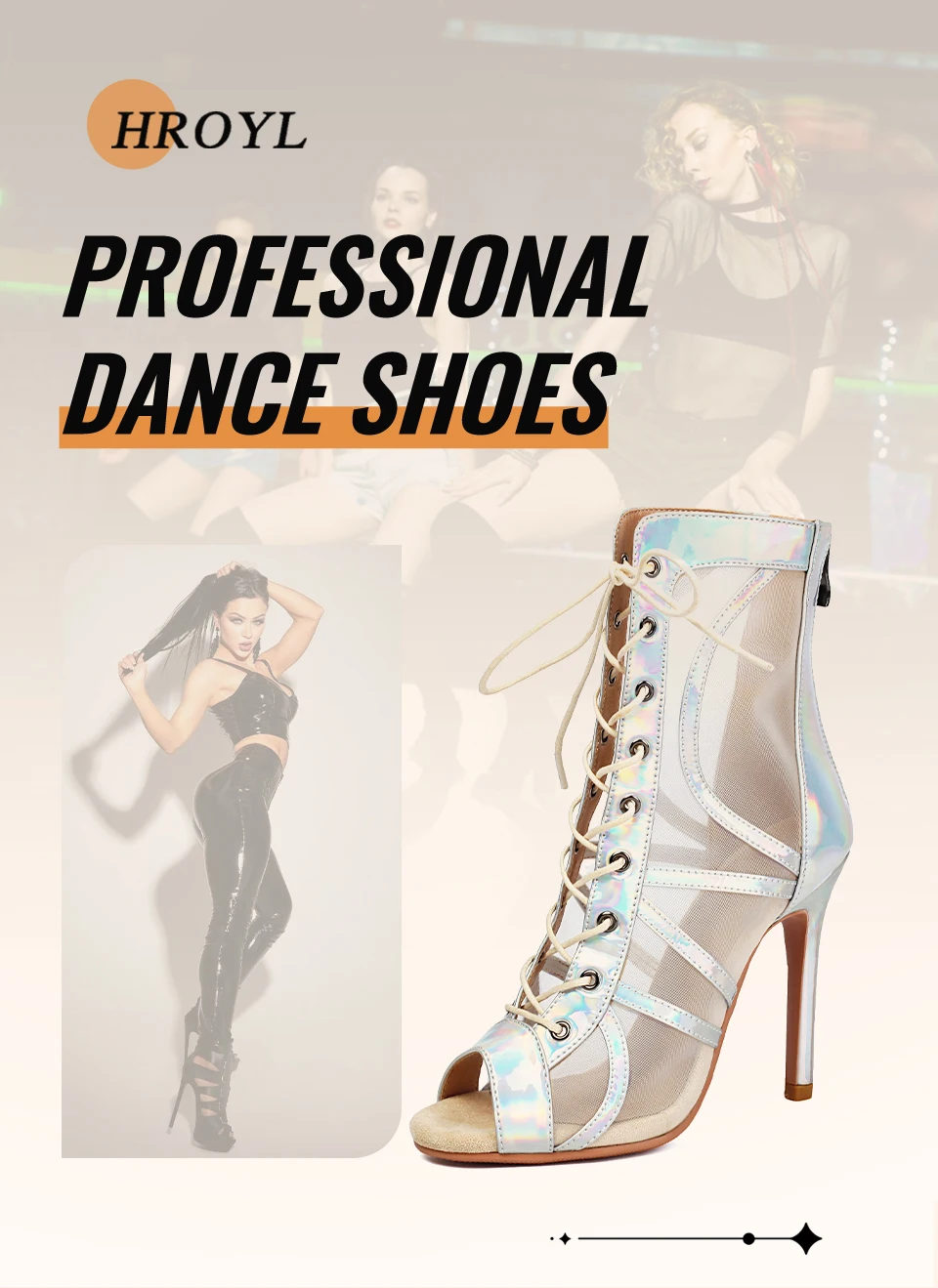 HROYL Patent Leather Latin Dance Shoes Women High-Top Jazz Ankle Boots Girls Ballroom Salsa Tango Party Dancing Shoes High Heels