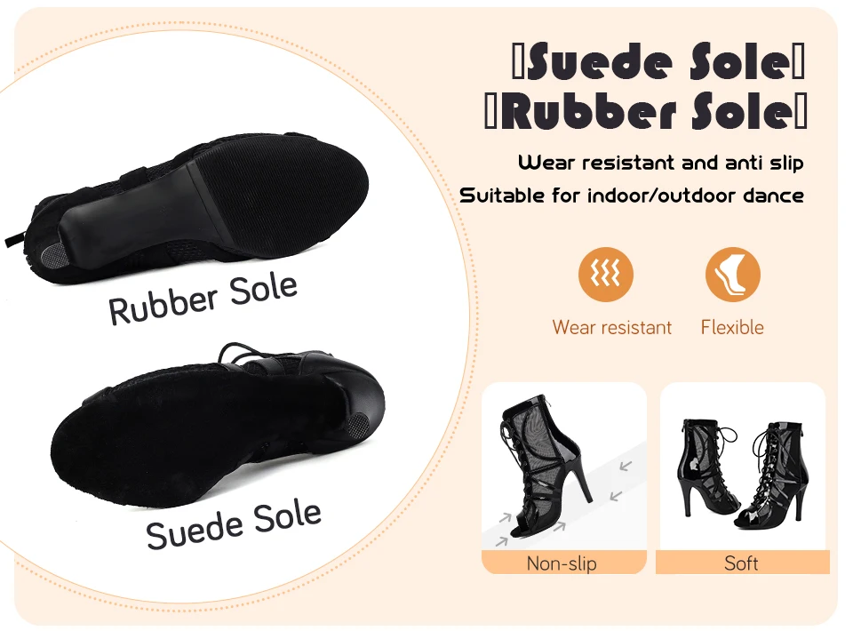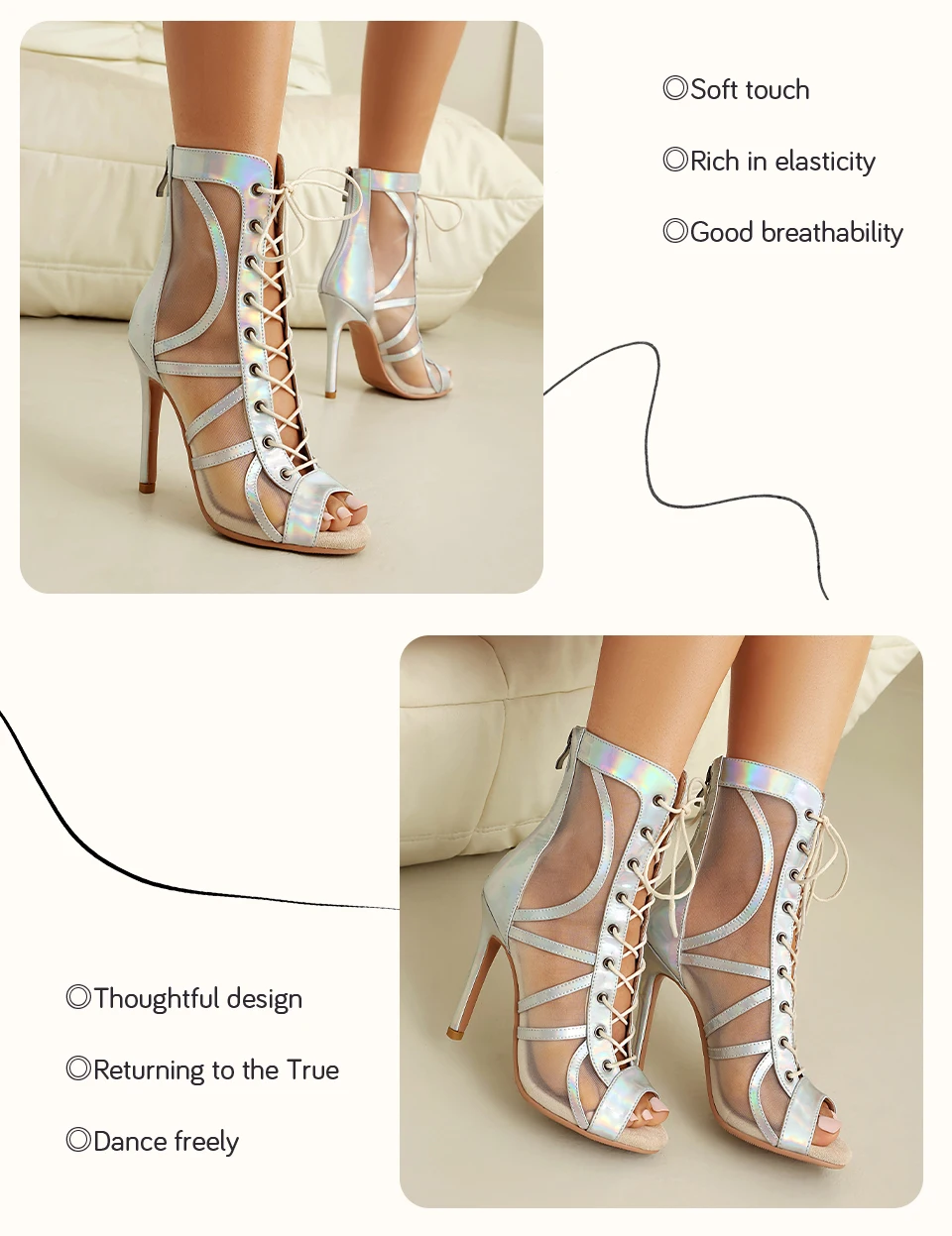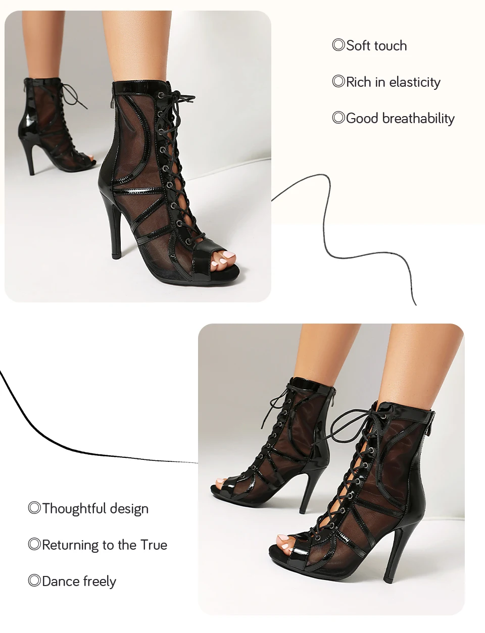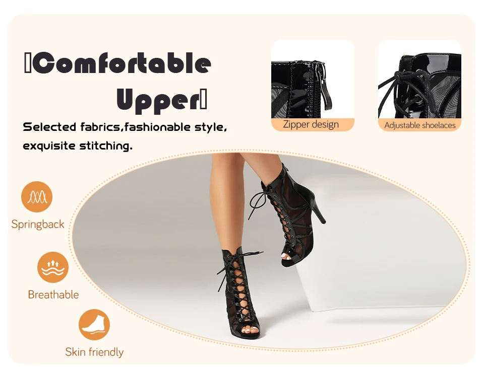 HROYL Patent Leather Latin Dance Shoes Women High-Top Jazz Ankle Boots Girls Ballroom Salsa Tango Party Dancing Shoes High Heels