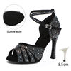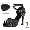 HROYL Rhinestone Satin Latin Dance Shoes Women Breathable Microfiber Inside Ballroom Dance Shoes Jazz Tango Salsa Soft Soled