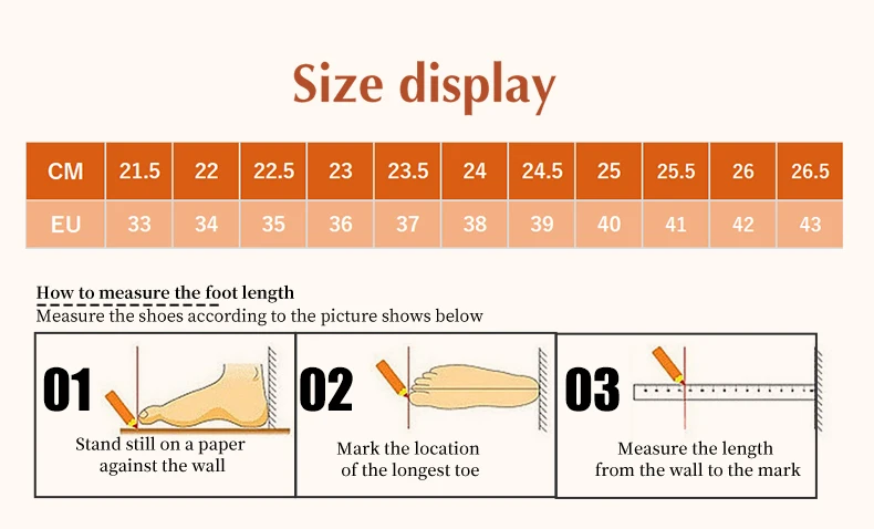 Size Tip:Please Measure your feet length before place the order, then refer to the size chart to choose the size according to your feet length.