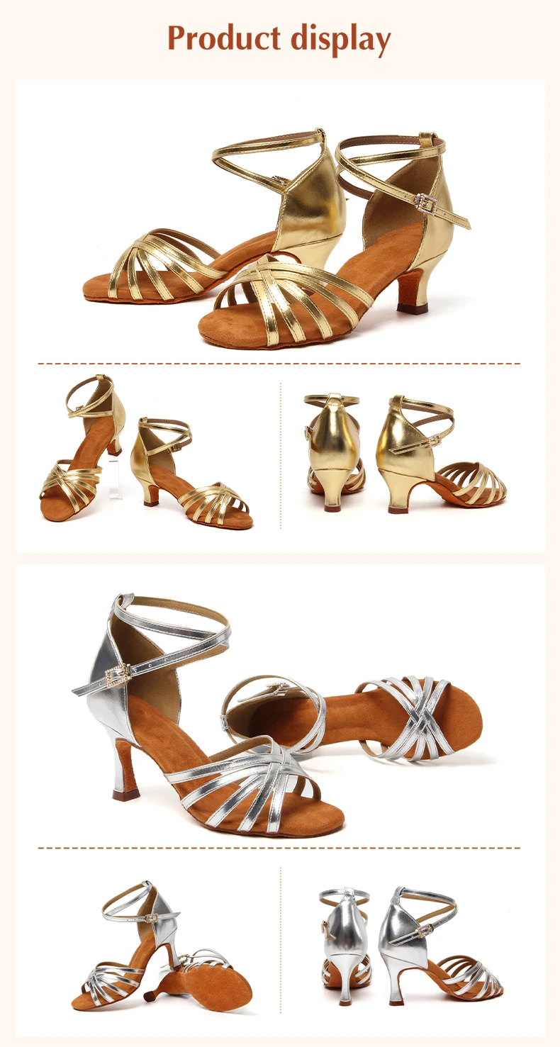 HROYL Standard Dance Shoes Women Latin Dance Shoes Woman Latin Dancing Shoes Practice Tango Salsa Sandals Party Soft 5CM/7CM