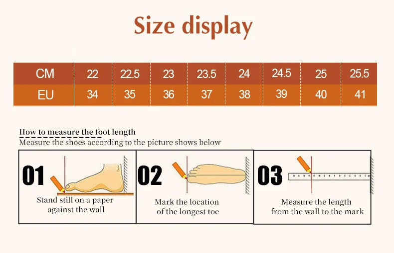 Size Tip:Please Measure your feet length before place the order, then refer to the size chart to choose the size according to your feet length.
