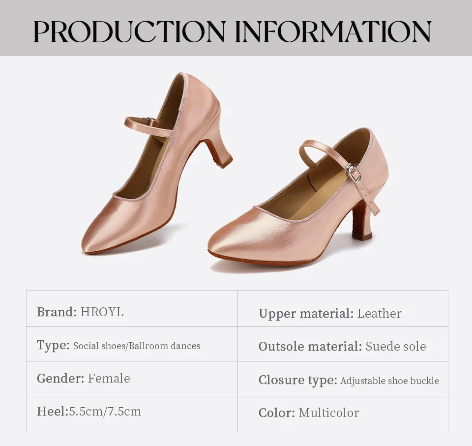 HROYL Standard Latin Dance Shoes for Women Elegant Dancing Shoes Girls Modern Waltz Samba Tango Party Soft Middle Heel 5CM/7CM