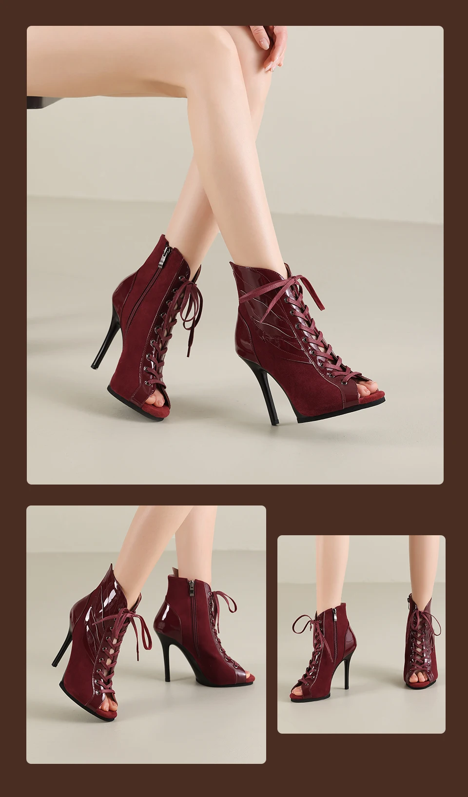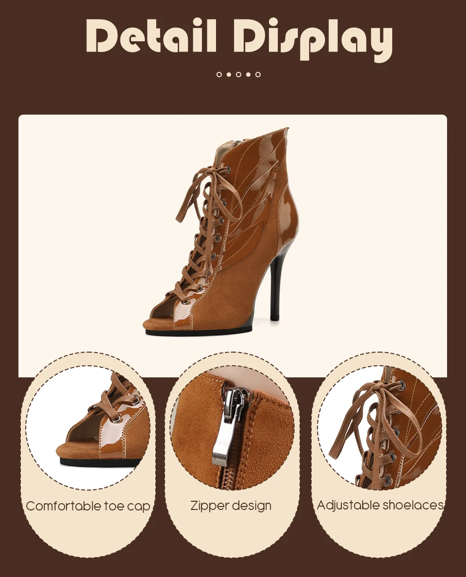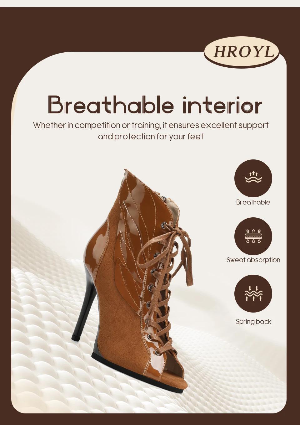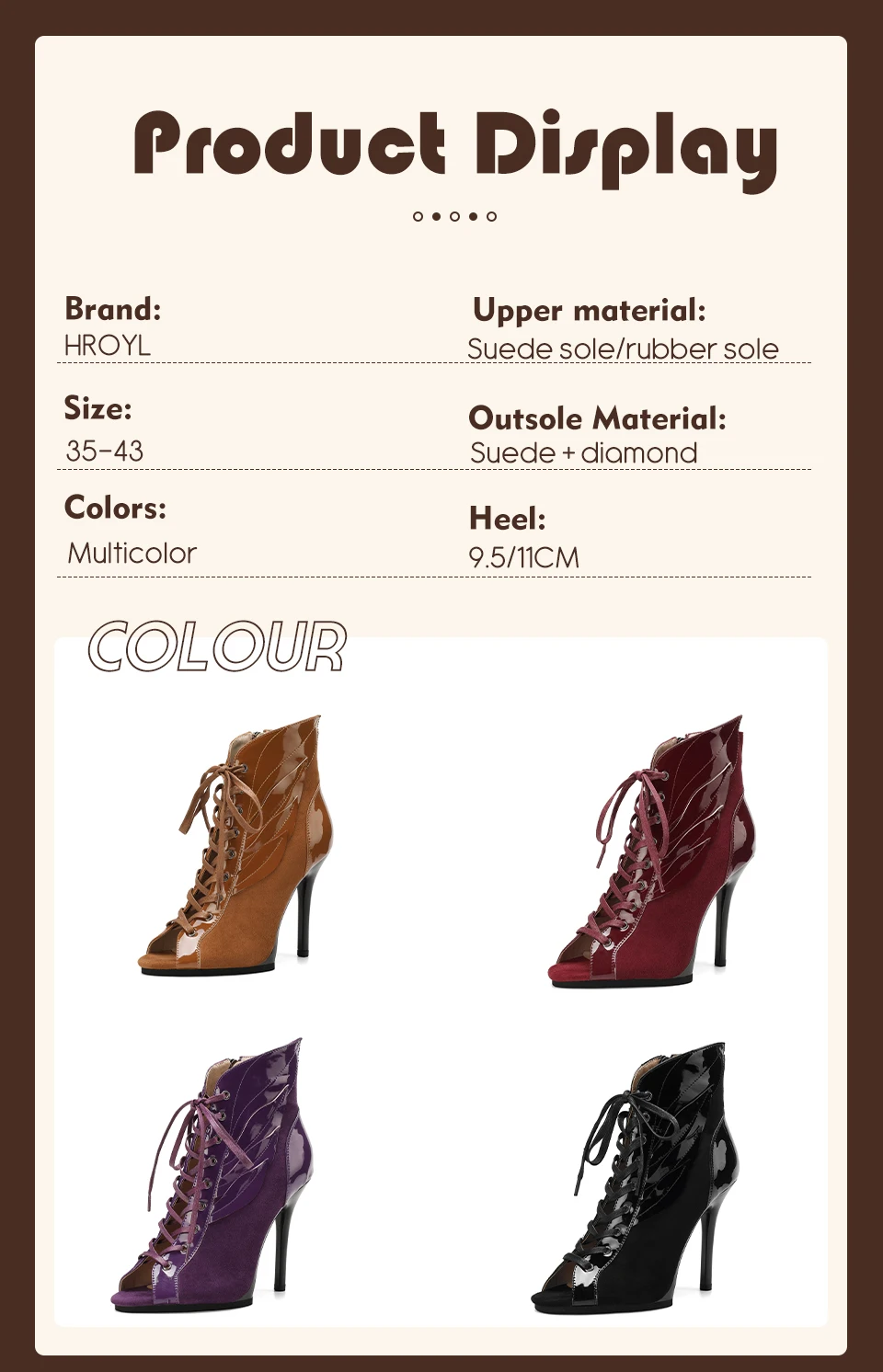 HROYL Unique Shape High Heels Ankle Boots For Women 2026 Spring Peep Toe Lace-Up Pumps Soft Jazz Dance Shoes Ladies 34-43