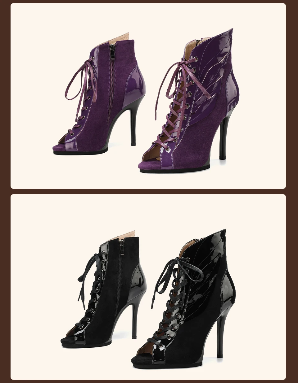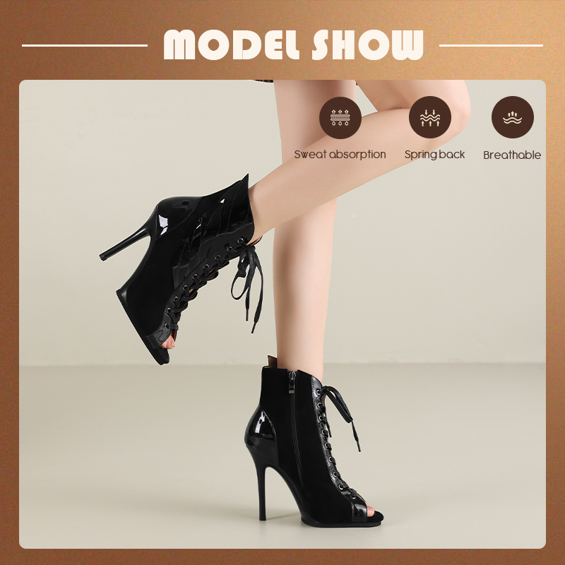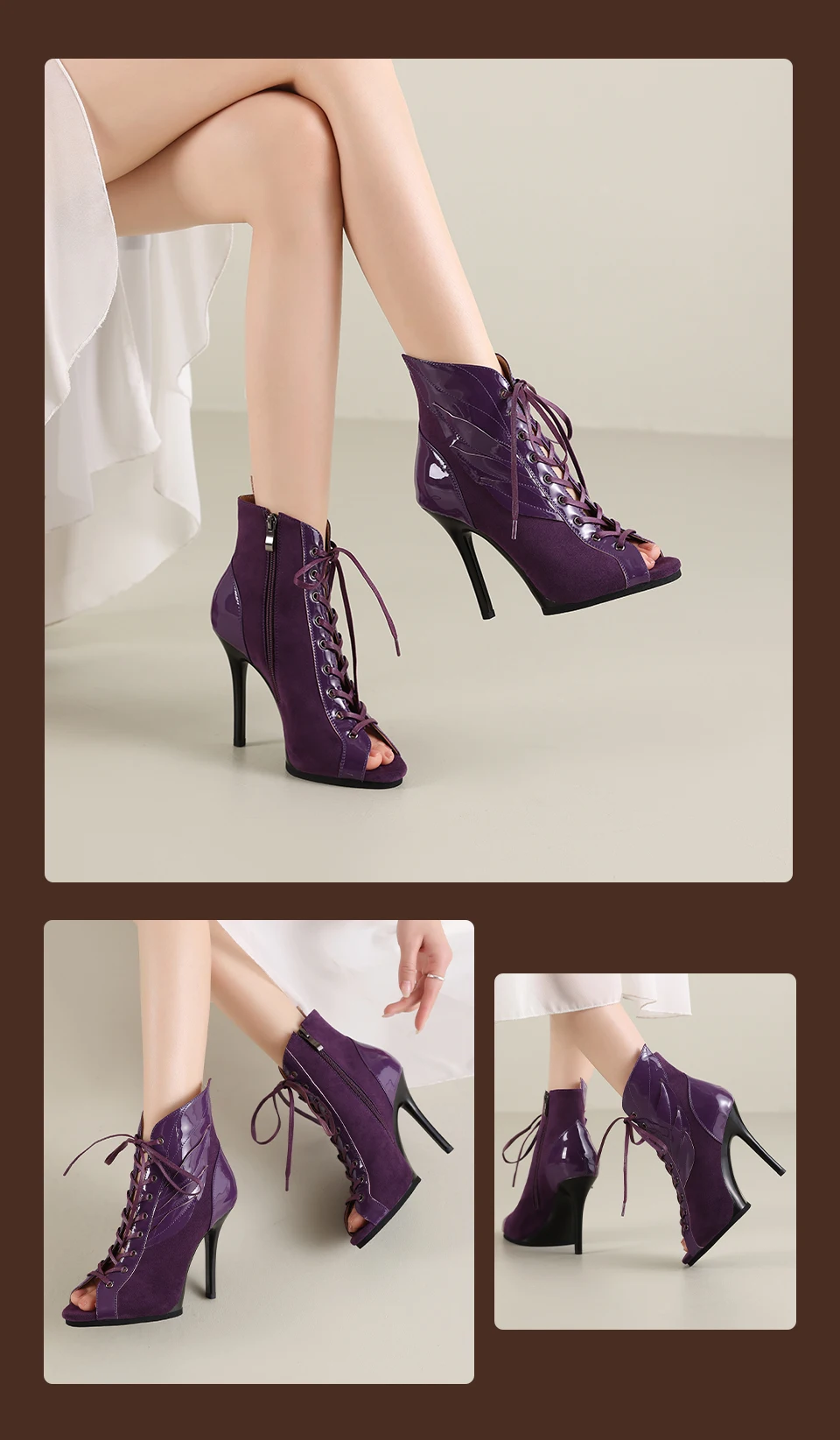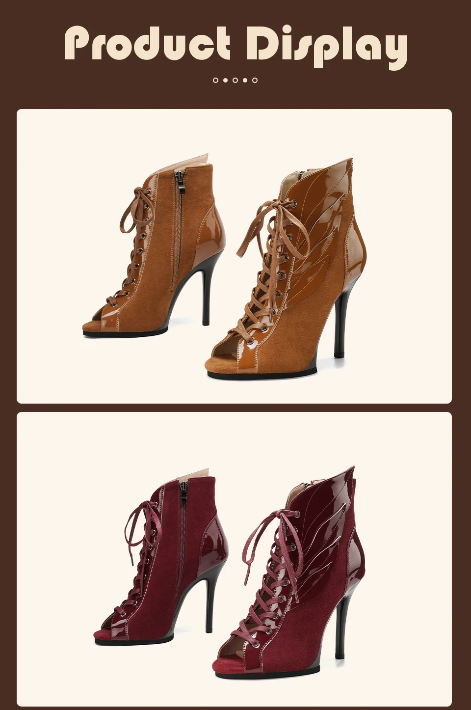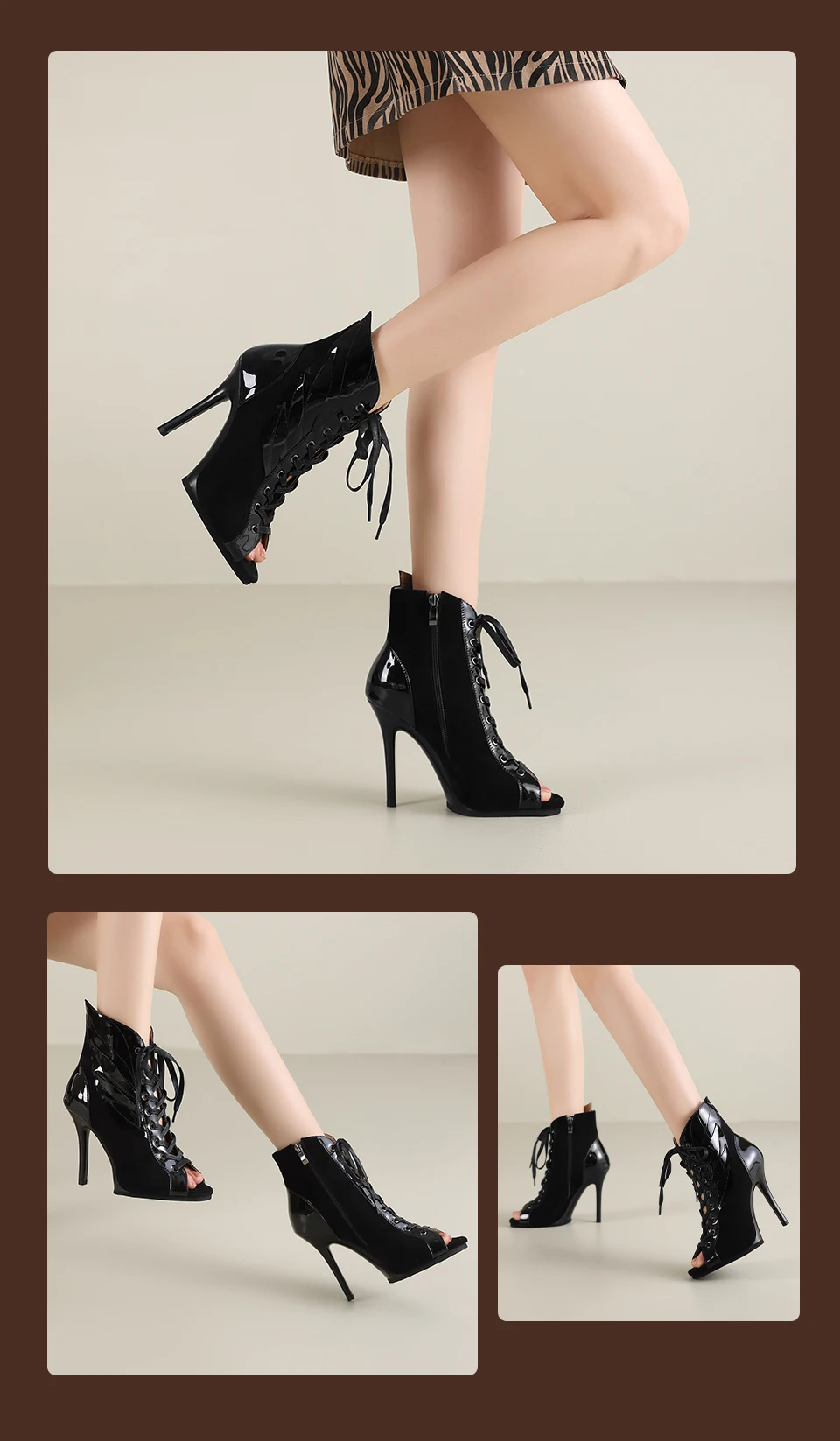 HROYL Unique Shape High Heels Ankle Boots For Women 2026 Spring Peep Toe Lace-Up Pumps Soft Jazz Dance Shoes Ladies 34-43