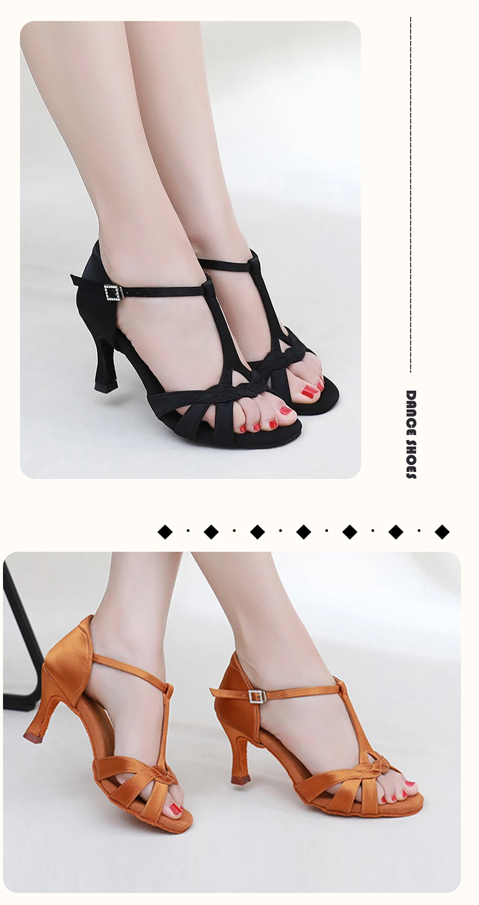 HROYL Woman Latin Dance shoes High-heeled Soft-soled Dance Shoes Ballroom Dance Mid-heel Rumba Cha Cha Performance Latin Shoes