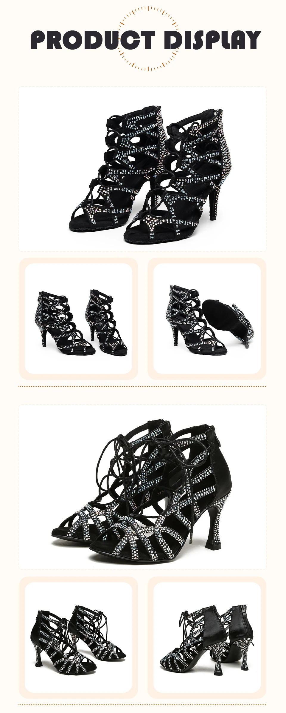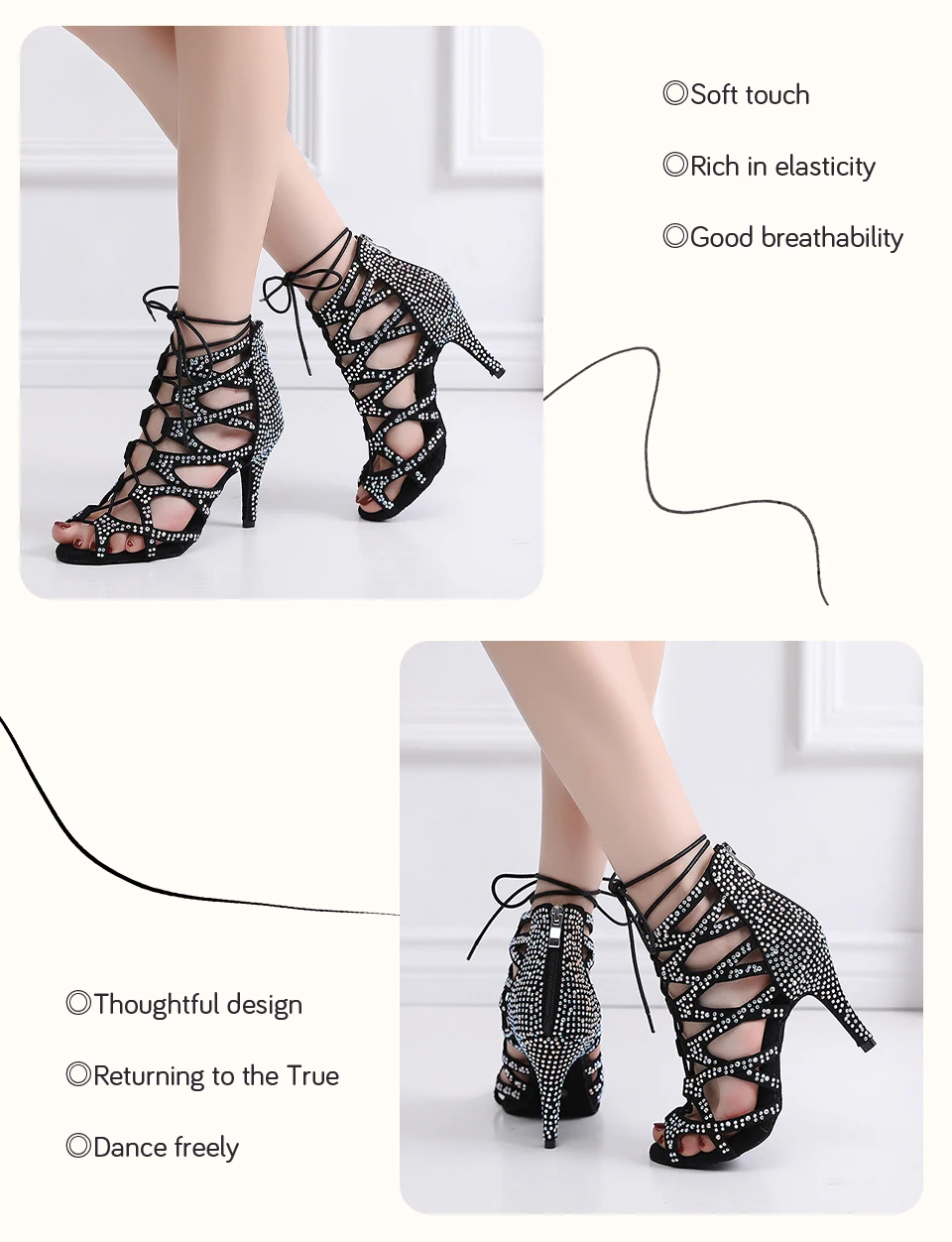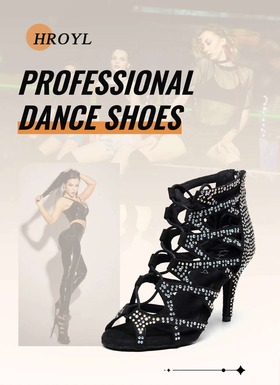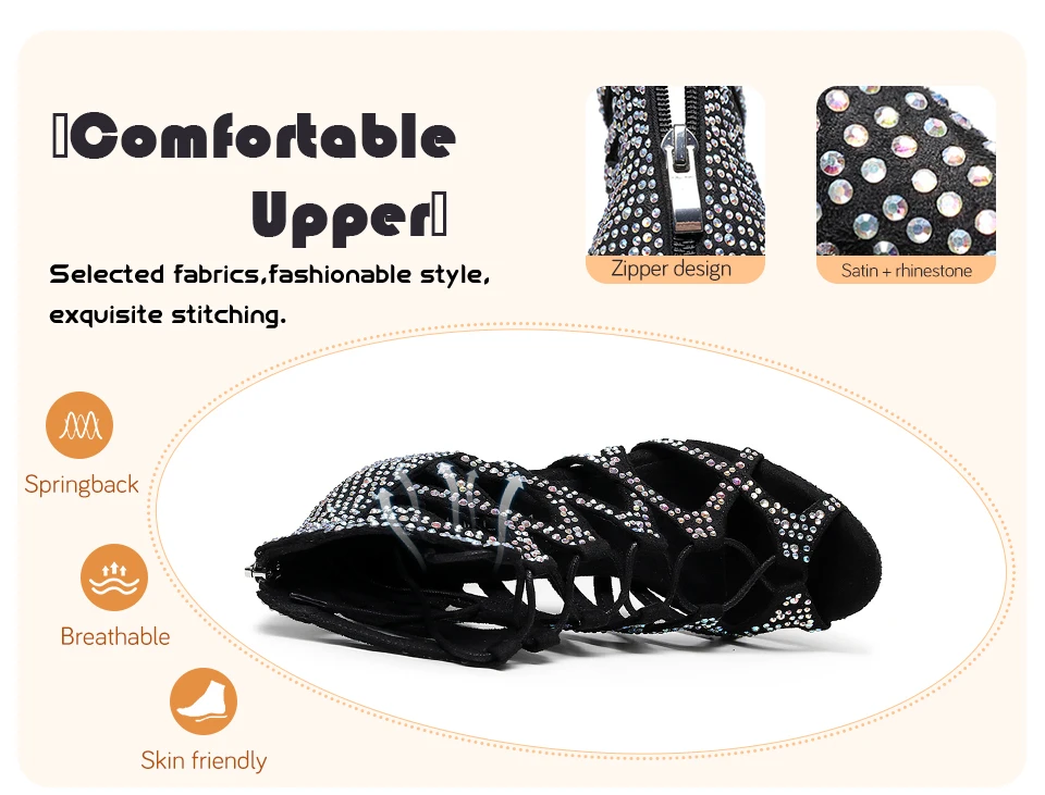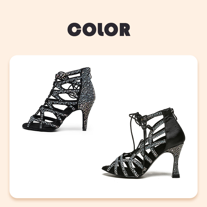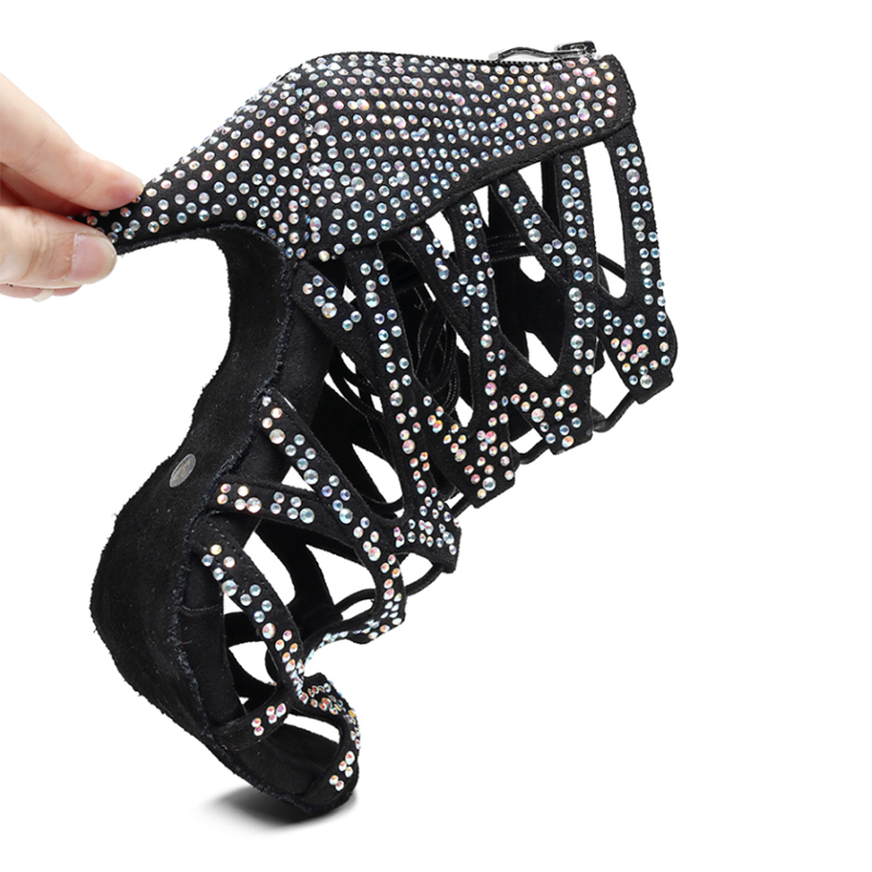 HROYL Women Dance Boots Shiny Latin Jazz Dance Shoes Full Rhinestone Lace Up Dancing Boots Customized Women Ladies Dance Shoes