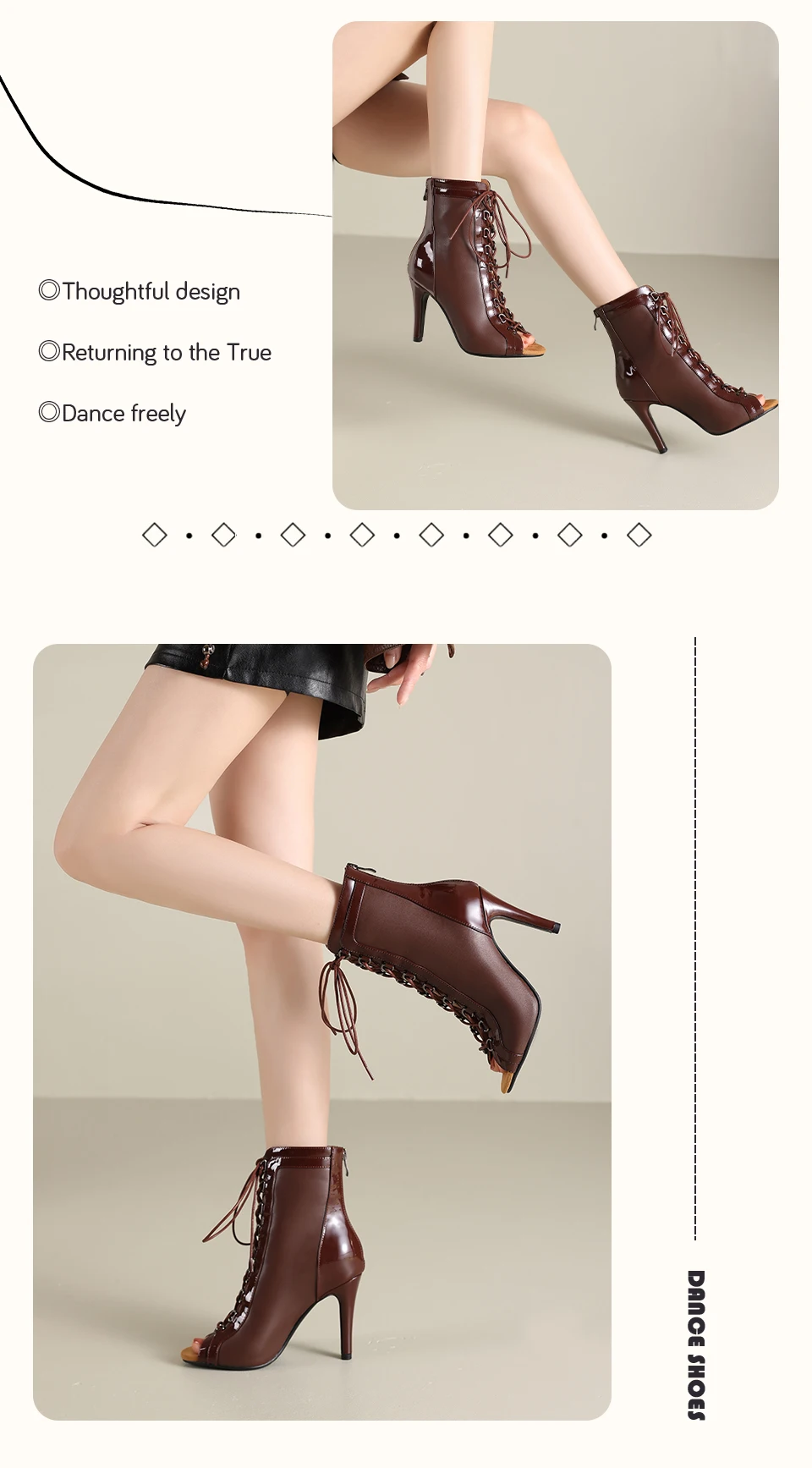 HROYL Women Latin Dance Shoes Jazz Pole Short Dance Boots Plus Size Lace-up Ladies Ballroom Party Dancing Shoes High Heels